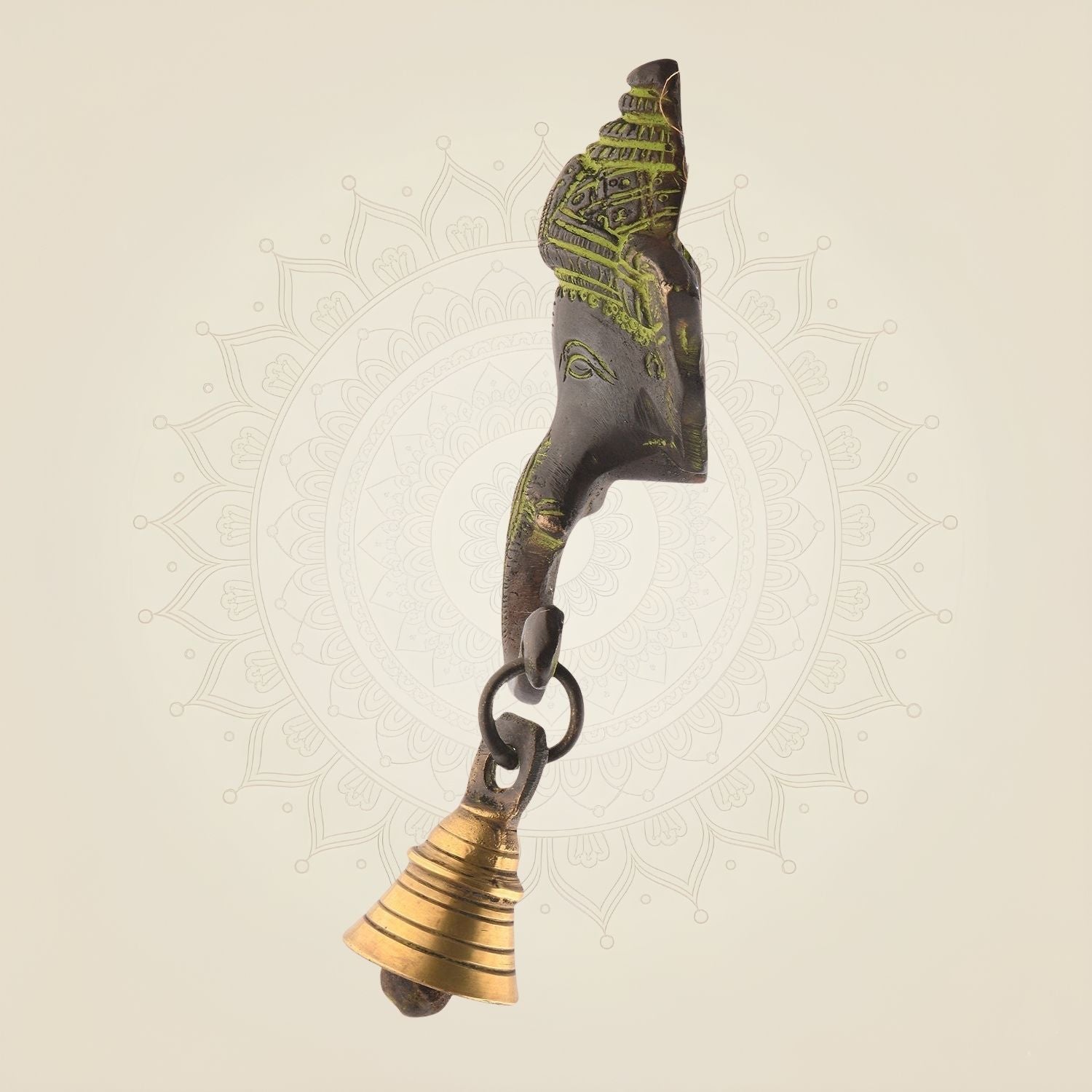 6" Antique Brass Ganpati Wall Hanging with Bell – Handcrafted Home Temple Decor