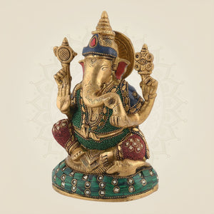 This 8-inch handcrafted Ganesha idol features a distinctive stone-finish brass design, blending traditional artistry with durable materials. Expertly crafted, the murti captures intricate details that embody the deity's symbolism, making it a meaningful addition to spiritual spaces or as a refined decorative piece. Its solid brass construction ensures longevity while the stone-like texture offers a unique aesthetic appeal. Ideal for devotees and collectors seeking an authentic and lasting representation of Ganesha.