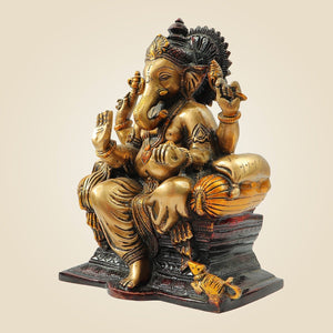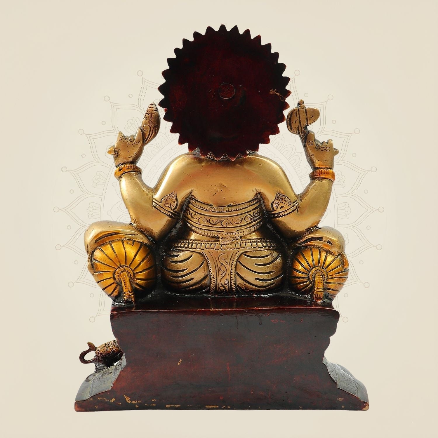 9.25" Brass Ganesh Idol on Throne – Majestic Sitting Ganesha Murti for Home & Gifts