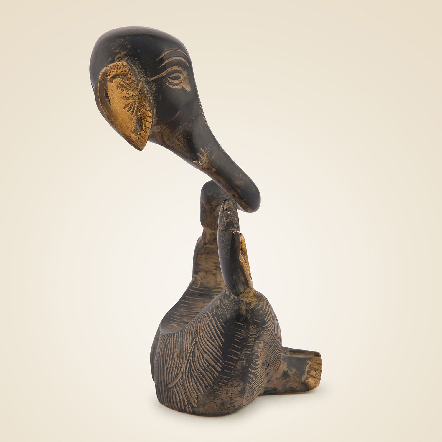 This 5.5" Ganesha idol features an antique brass finish, expertly handcrafted by skilled artisans to capture traditional detailing. Its timeless design blends spiritual significance with artistic heritage, making it a perfect centerpiece for your home or sacred space. Durable and finely crafted, this statue offers a meaningful decoration that honors cultural craftsmanship and invites positive energy.