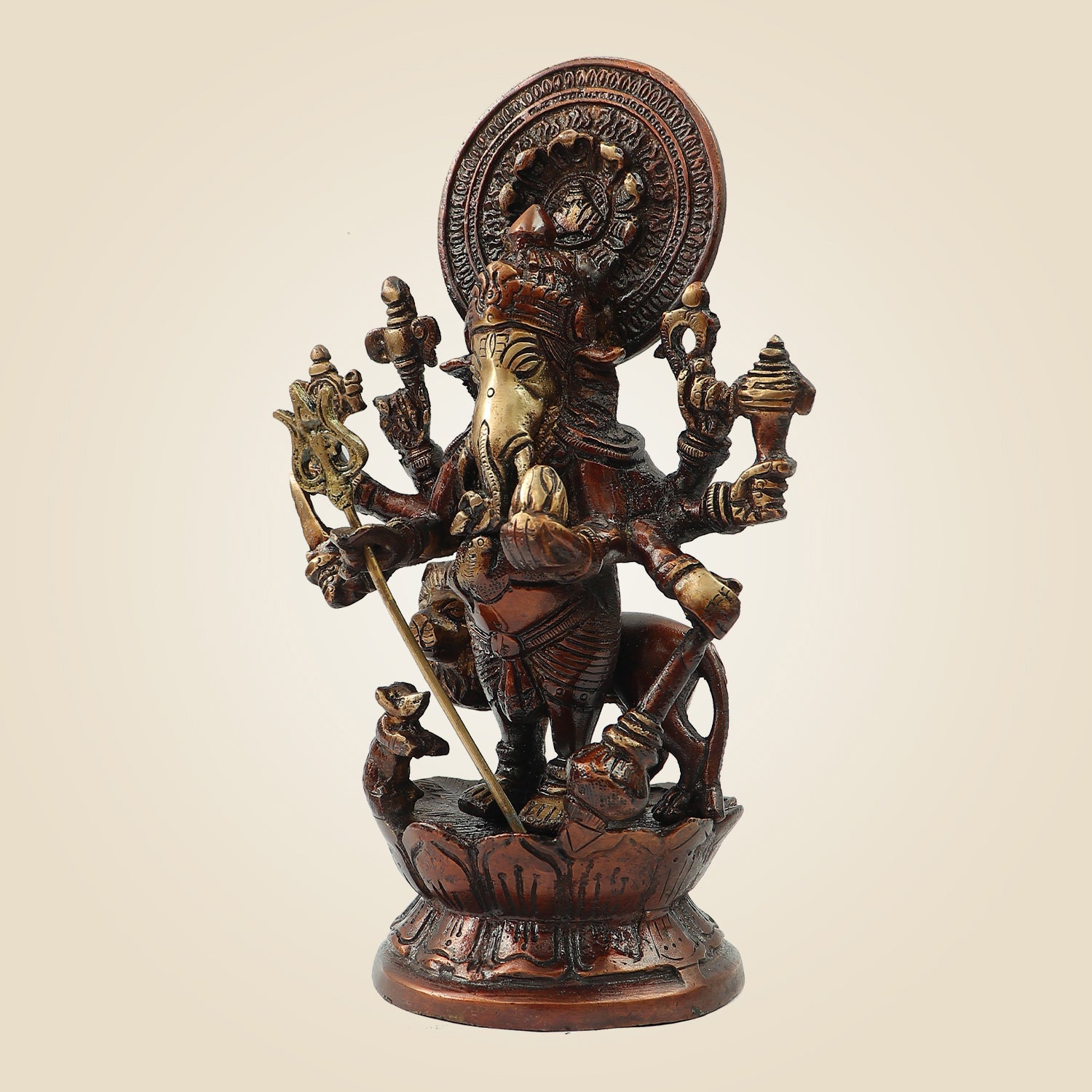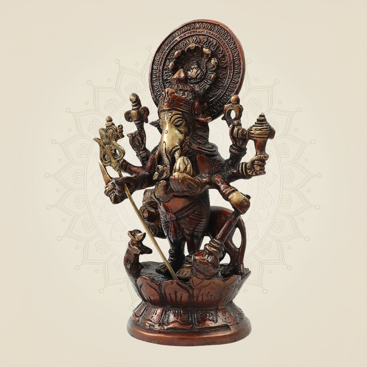 Brass Astha Bhuja Ganesha Idol - 8-Armed Ganesh Statue 9 Inch for Vastu & Home Temple Decor"