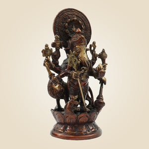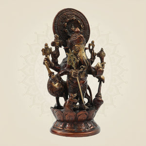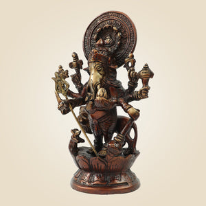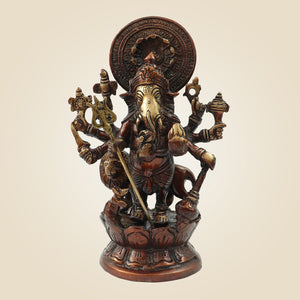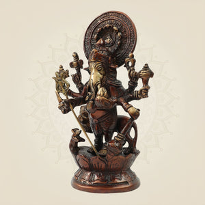 Crafted from high-quality brass, this 9-inch Astha Bhuja Ganesha idol features Lord Ganesh with eight arms, symbolizing his multifaceted powers. Ideal for Vastu compliance and enhancing your home temple, this statue combines traditional artistry with spiritual significance. Its intricate detailing and durable finish make it a timeless piece, promoting positivity and auspiciousness in your living space.