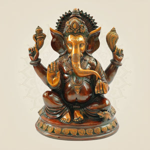 Brass Blessing Lord Ganesha Statue 12" – Handmade Spiritual Temple Idol
