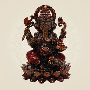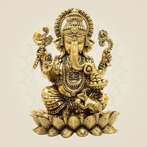 The Chaturbhuj Ganesh Idol, standing 4.75 inches tall, is meticulously handcrafted from pure brass by skilled artisans. This detailed murti captures the divine form with four arms, symbolizing wisdom, protection, and prosperity. Its solid brass composition ensures durability and a...