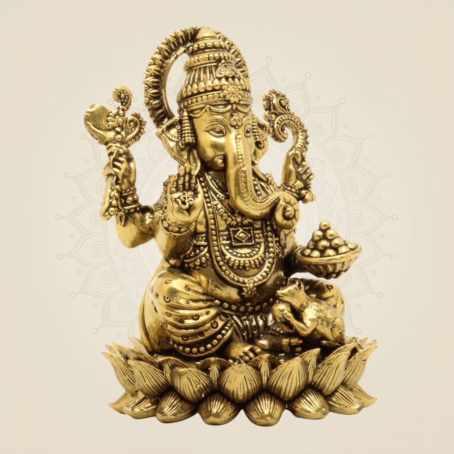Chaturbhuj Ganesh Idol – 4.75" Handcrafted Artisan Pure Brass Murti
