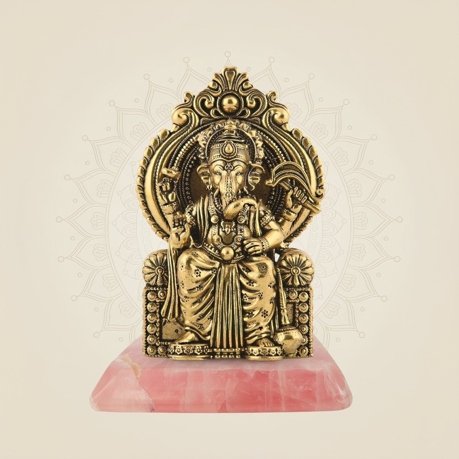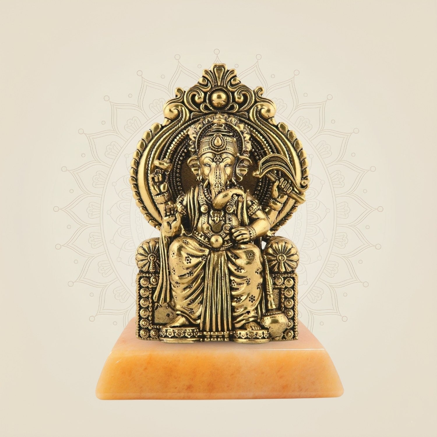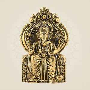 Chaturbhuj Ganesha Seated on Singhasan - 4" Brass Statue for Vastu & Spiritual Decor