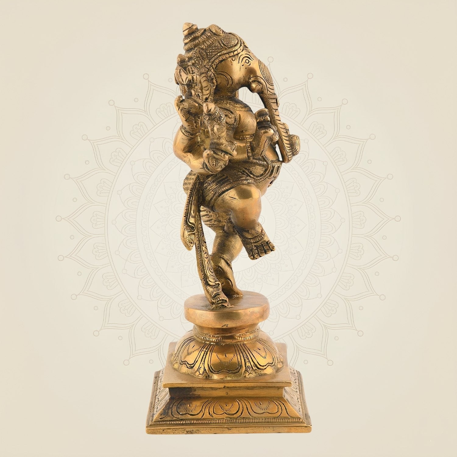 Dancing Ganesha Brass Idol 9.5" | Handcrafted Showpiece for Home, Office & Gifting