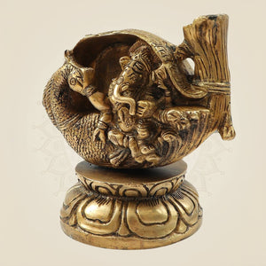 Divine Brass Ganesh Sitting in Shankh on Peacock Design Idol for Home Décor 5.5"