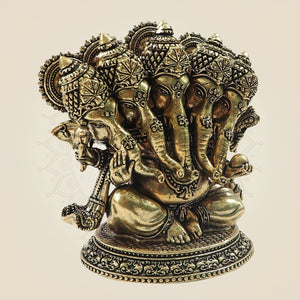 Elegant Panchmukhi Ganesh Brass Statue with Oval Base - 4.25"