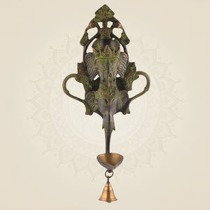 Elevate your entrance with this 15.5" Ganpati wall hanging crafted from pure brass with an antique finish. Designed to hold an oil lamp, it combines spiritual symbolism with functional decor, inviting positive energy into your space. The detailed craftsmanship highlights traditional artistry, making it a distinguished addition to any entrance wall. Durable and visually striking, this piece enhances your home’s ambiance while honoring cultural heritage.
