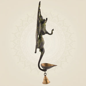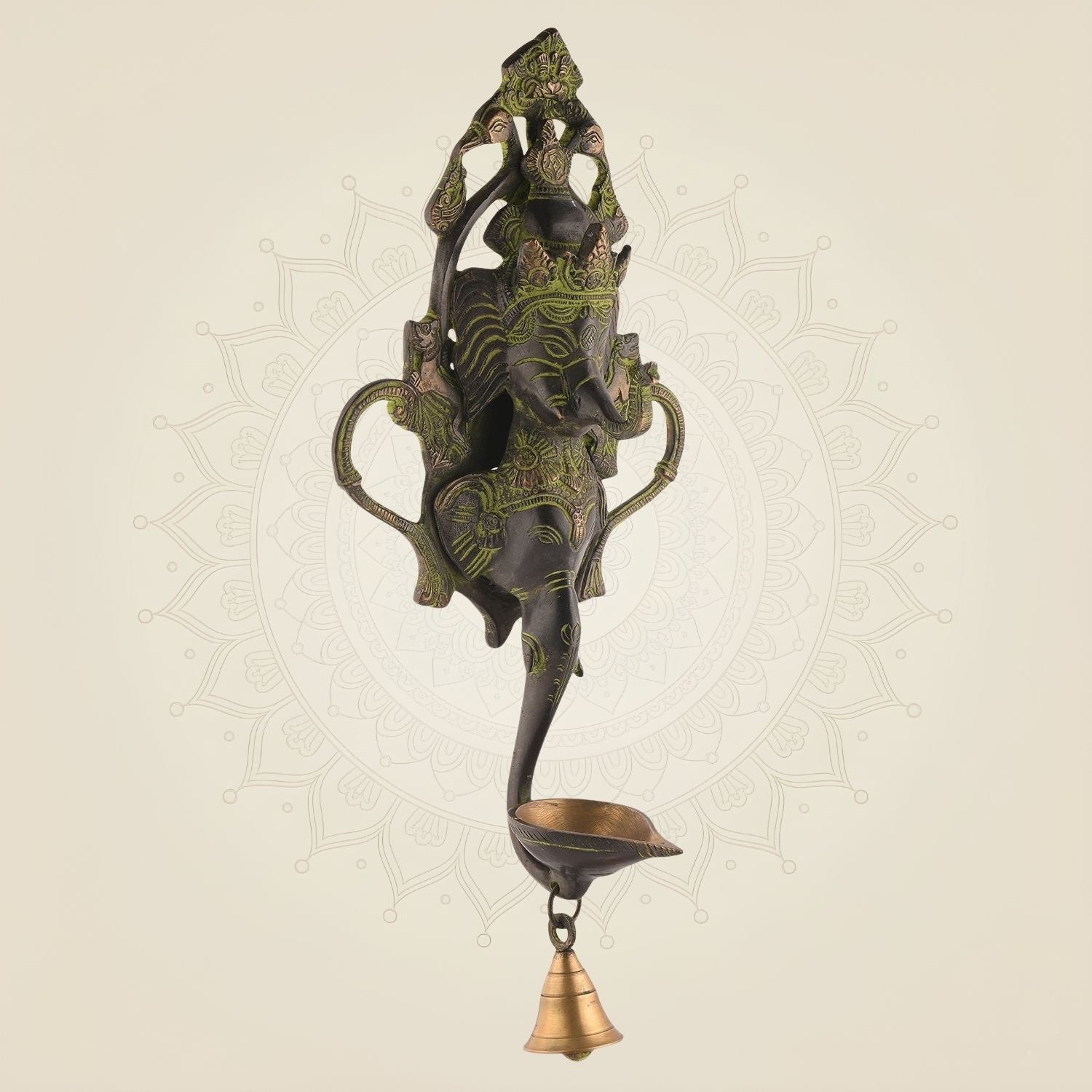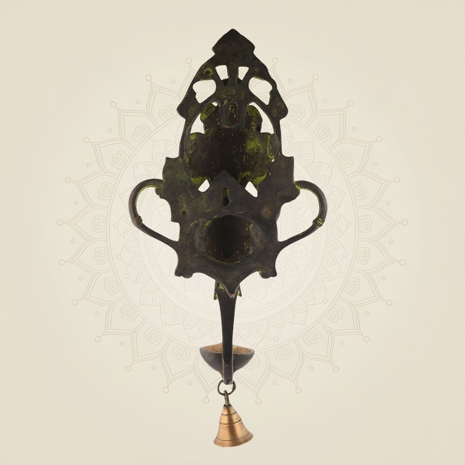 Ganpati Wall Hanging with Oil Lamp 15.5"– Antique Finish Pure Brass for Entrance Wall