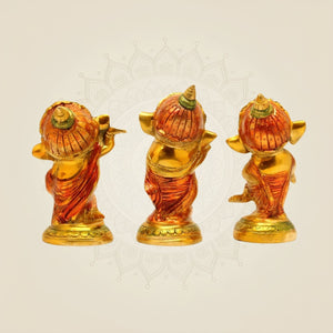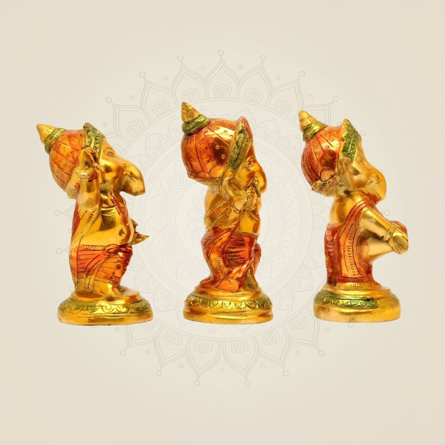 Musical Baby Ganesha Brass Idols 5.5" Each– Hand-Painted Set of 3 for Home & Gifts