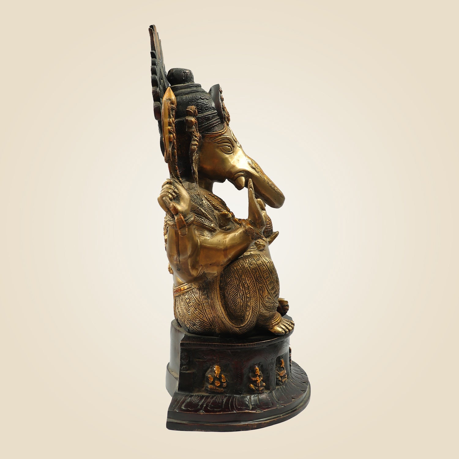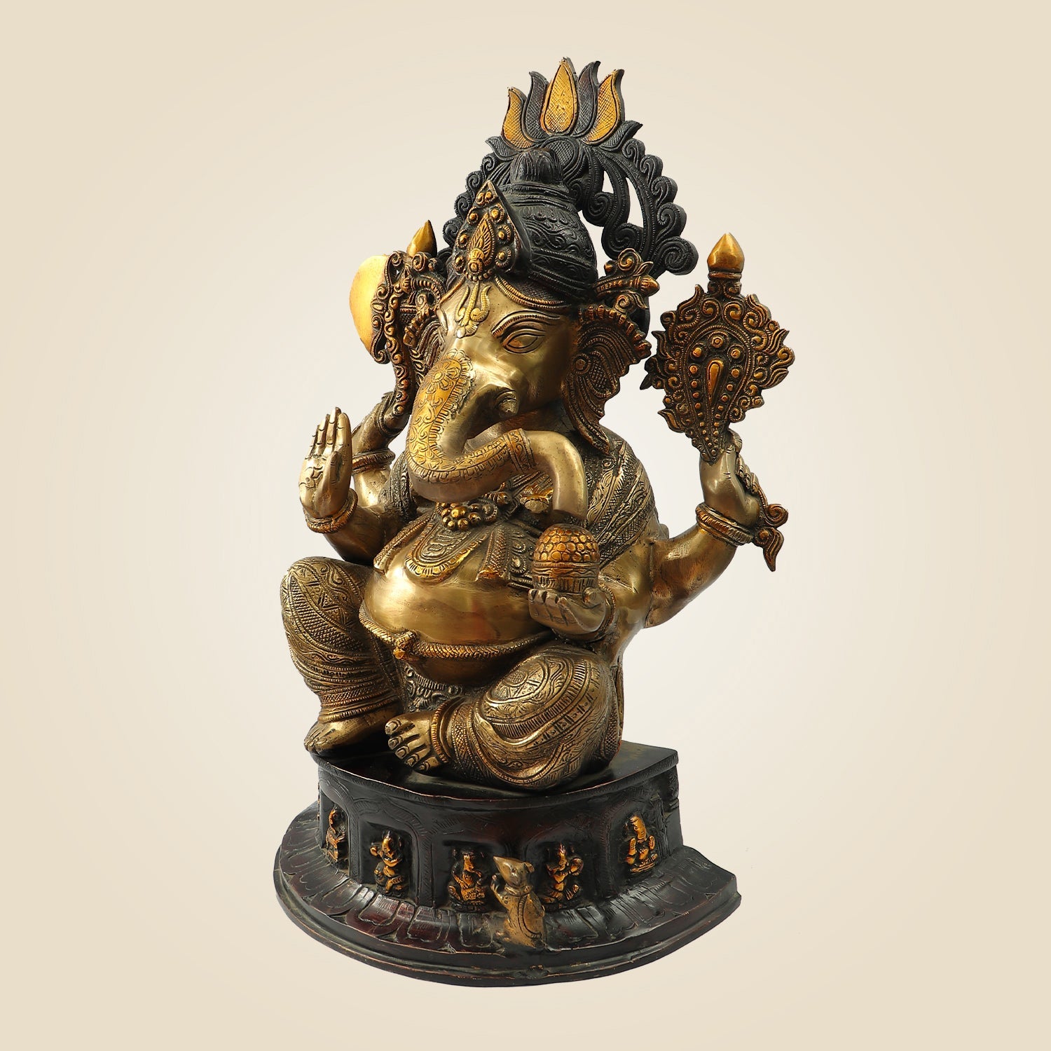 Seated Chaturbhuja Lord Ganesha Idol in Brass – Handmade Temple Statue 22.25"