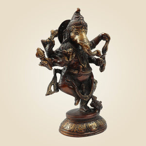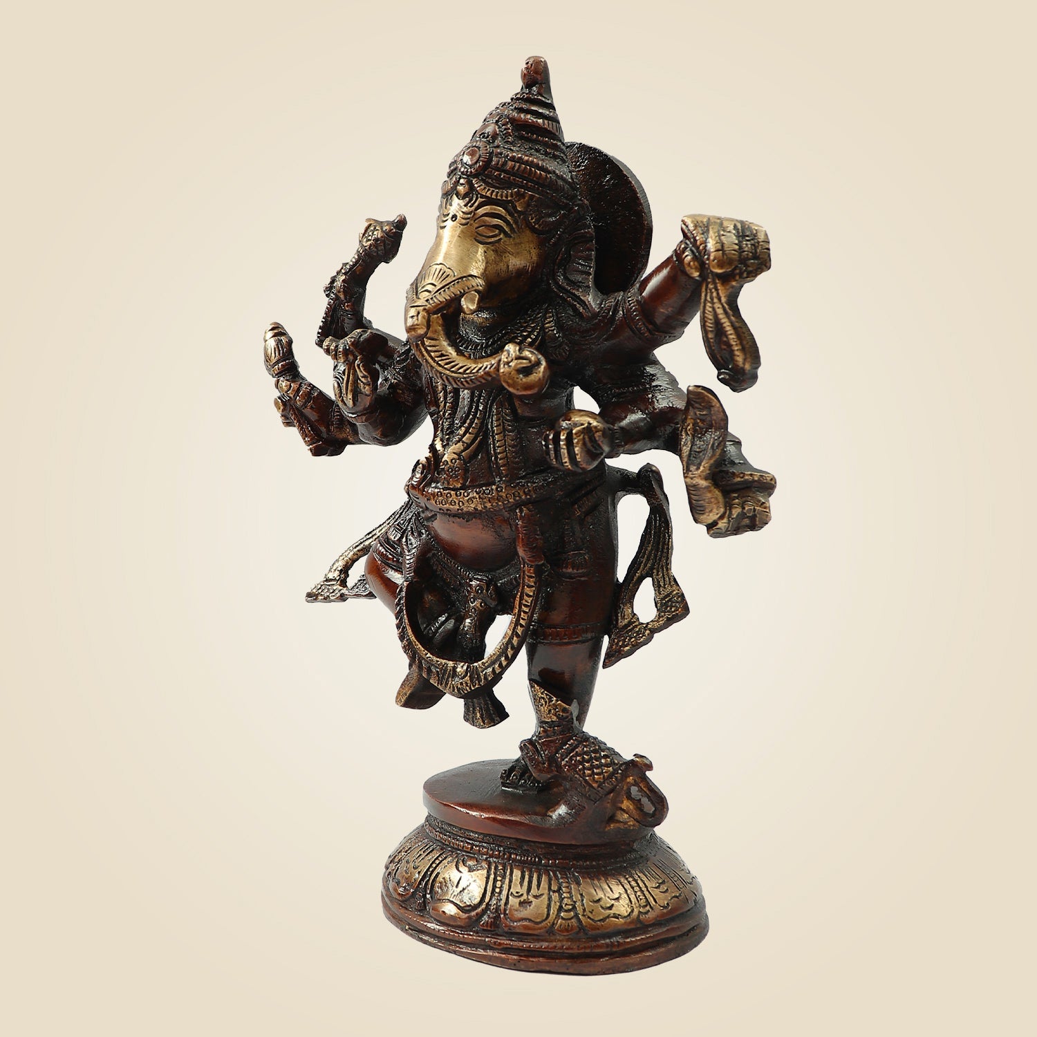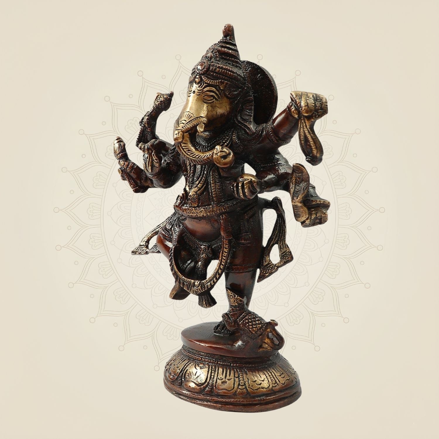 Traditional Brass Ganesh Murti in Dancing Pose 8.5" | Temple & Home Decor