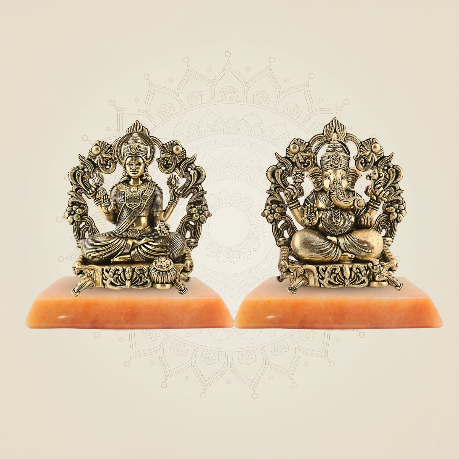 Brass Lakshmi Ganesh 3.75" – Sitting on Lotus Aasan for Home Temple & Diwali Pooja