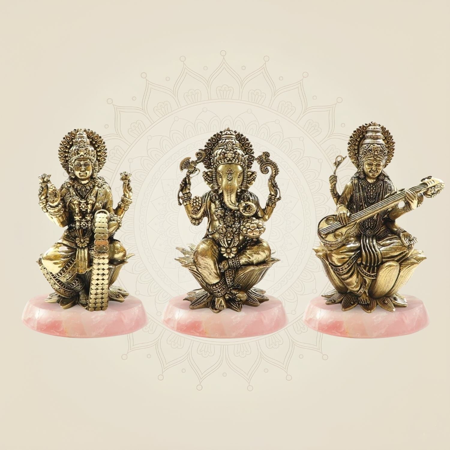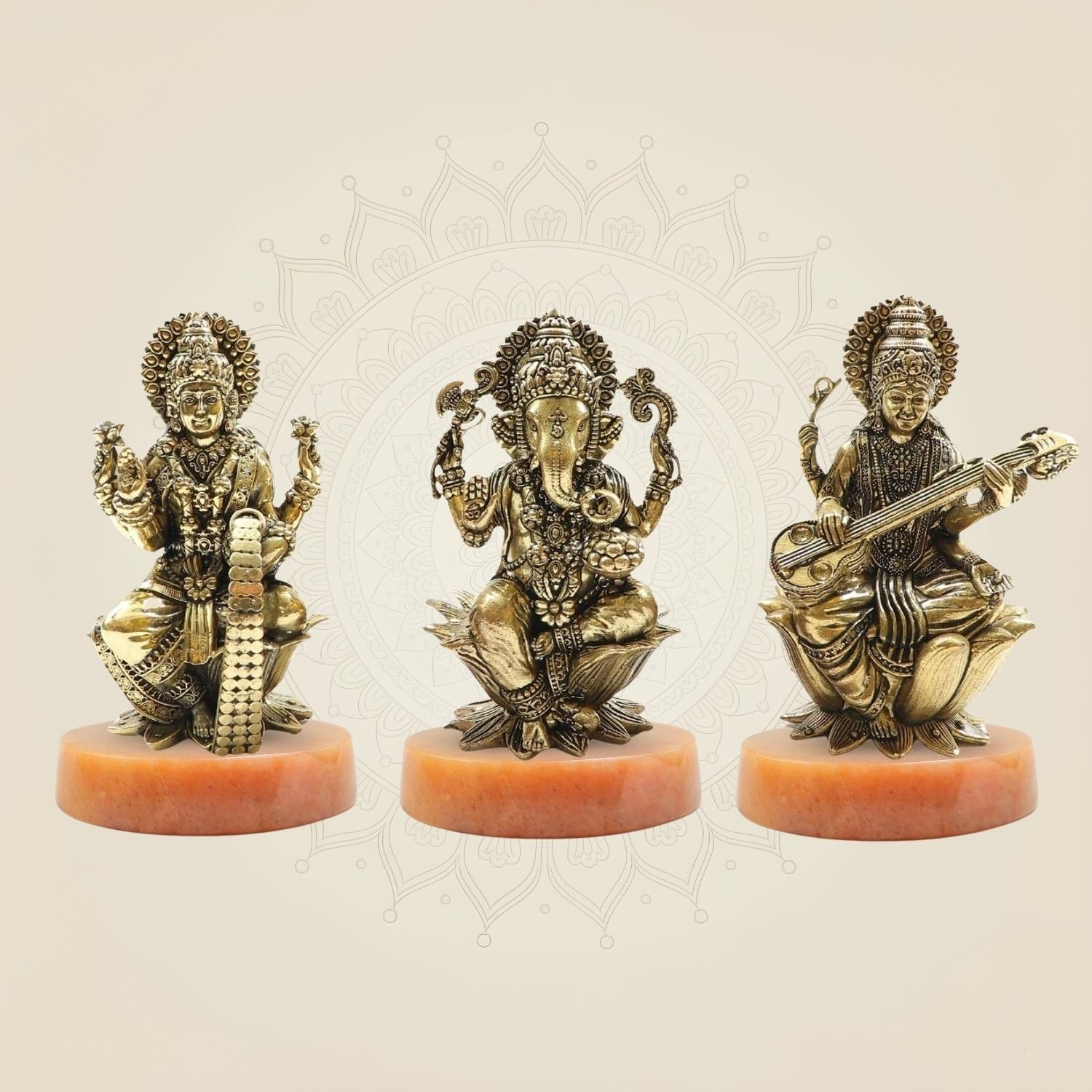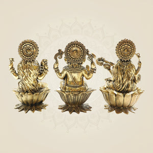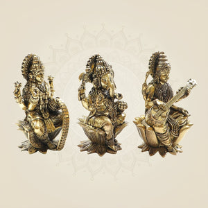 Brass Lakshmi Ganesh Saraswati Idol Set – Perfect Murti 4" for Diwali Pooja & Gifting