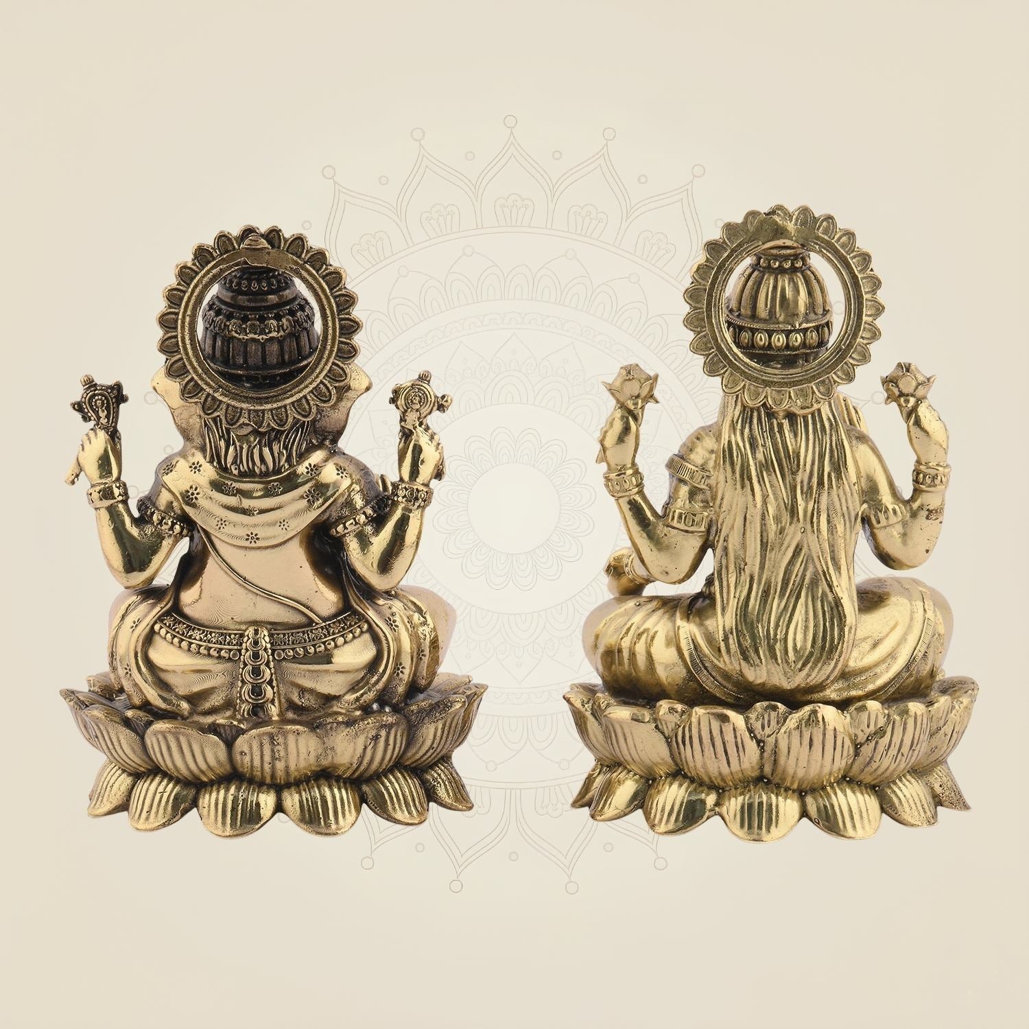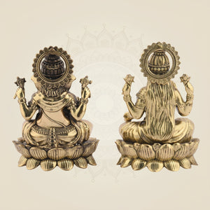 Brass Laxmi Ganesh Idol Pair – Small Lotus Base Murti 3" for Diwali Puja