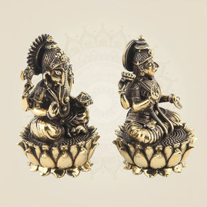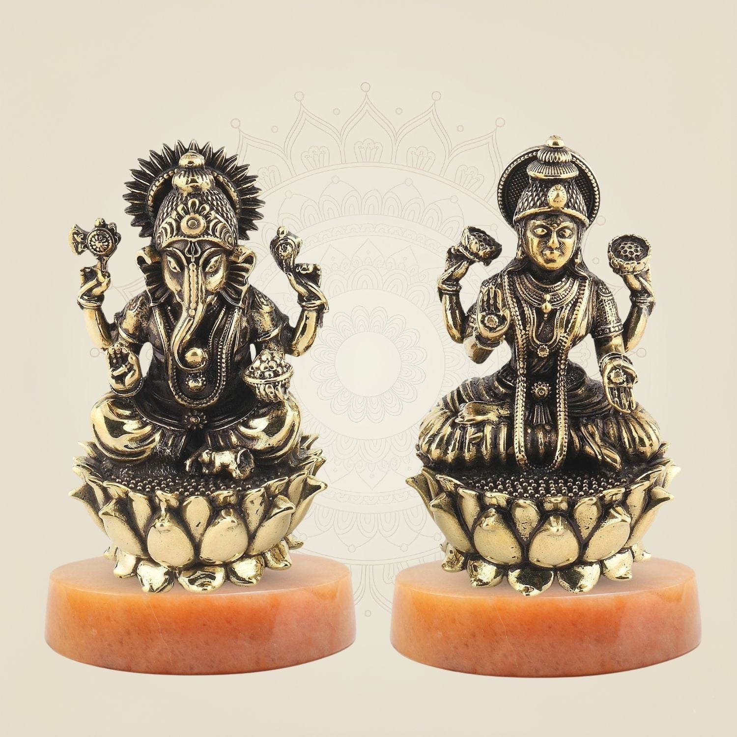 Lakshmi Ganesh Brass Idol 3" – Handcrafted Superfine Lightweight Divine Decor