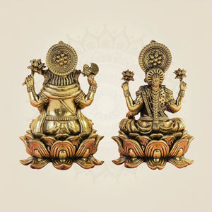 Celebrate Diwali and other spiritual ceremonies with this exquisite 5" handcrafted Lakshmi Ganesh brass idol pair. Made from pure brass, these statues symbolize wealth and prosperity, making them ideal for Lakshmi Puja, Ganesh Puja, and related rituals. Their detailed craftsmanship ensures an authentic and auspicious presence, enhancing both your spiritual space and festive moments with tradition and elegance.