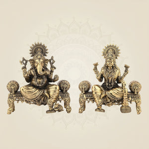 Fill your home with prosperity and positive energy by placing the 4.5-inch Laxmi Ganesh on Singhasan. This idol is handcrafted using brass and features the most worshiped God of Hinduism, Lakshmi, and Ganesh on it. Those who place this murti at their home or workplace can see the positive changes in their lives and invite abundance and wealth.