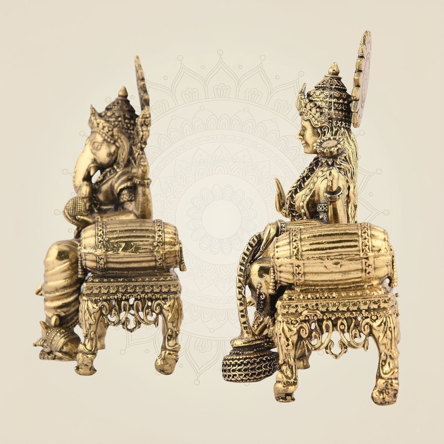 Laxmi Ganesh on Singhasan 4.5" Brass Idol – Superfine Lightweight Artisan Piece