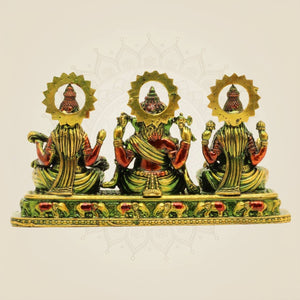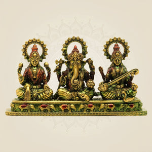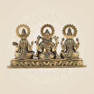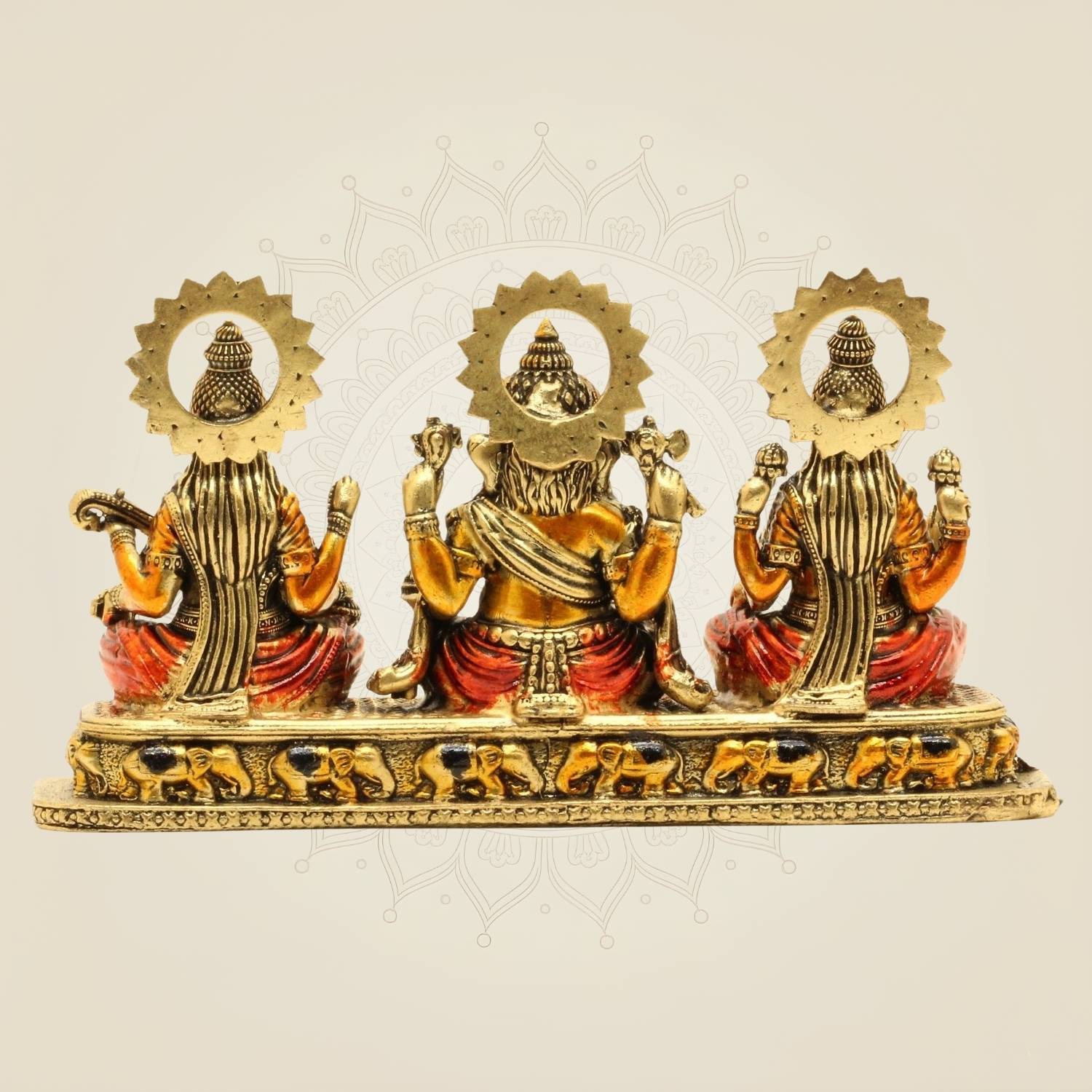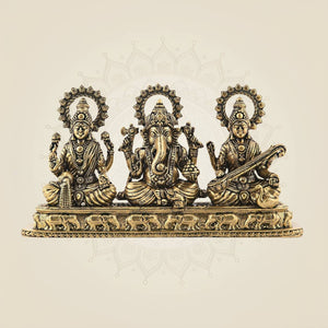 Brass Ganesh Lakshmi Saraswati Idol Set | Divine Hindu God Statue for Pooja & Home Decor 4"