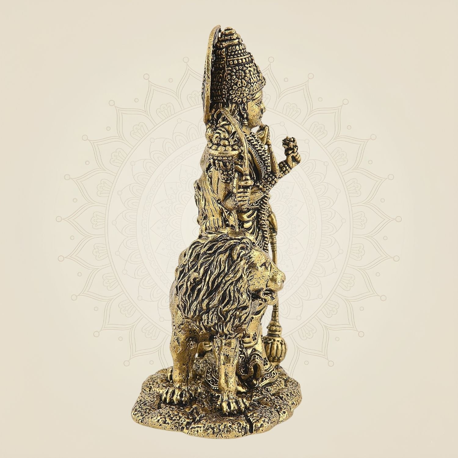 5" Durga Maa Brass Idol with Lion – Handcrafted Divine Sculpture