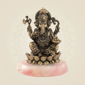 Chaturbhuj Ganesha Brass Idol – 3" Handcrafted Artisan for Home Decor