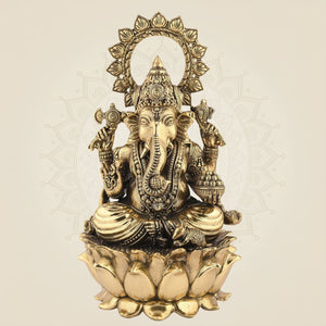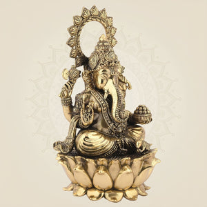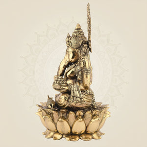 Chaturbhuj Ganesha Brass Idol– 9.25" Handcrafted Murti For Pooja & Decor