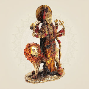 This exquisite 6-inch idol of Durga Mata on a lion, crafted entirely from pure brass, embodies divine artistry and spiritual significance. Meticulously handcrafted, this statue captures the goddessβs strength and grace, symbolizing protection and victory over negativity. Ideal for home altars or meditation spaces, it serves as a powerful focal point for devotion and enhances spiritual ambiance with its enduring craftsmanship and sacred presence.