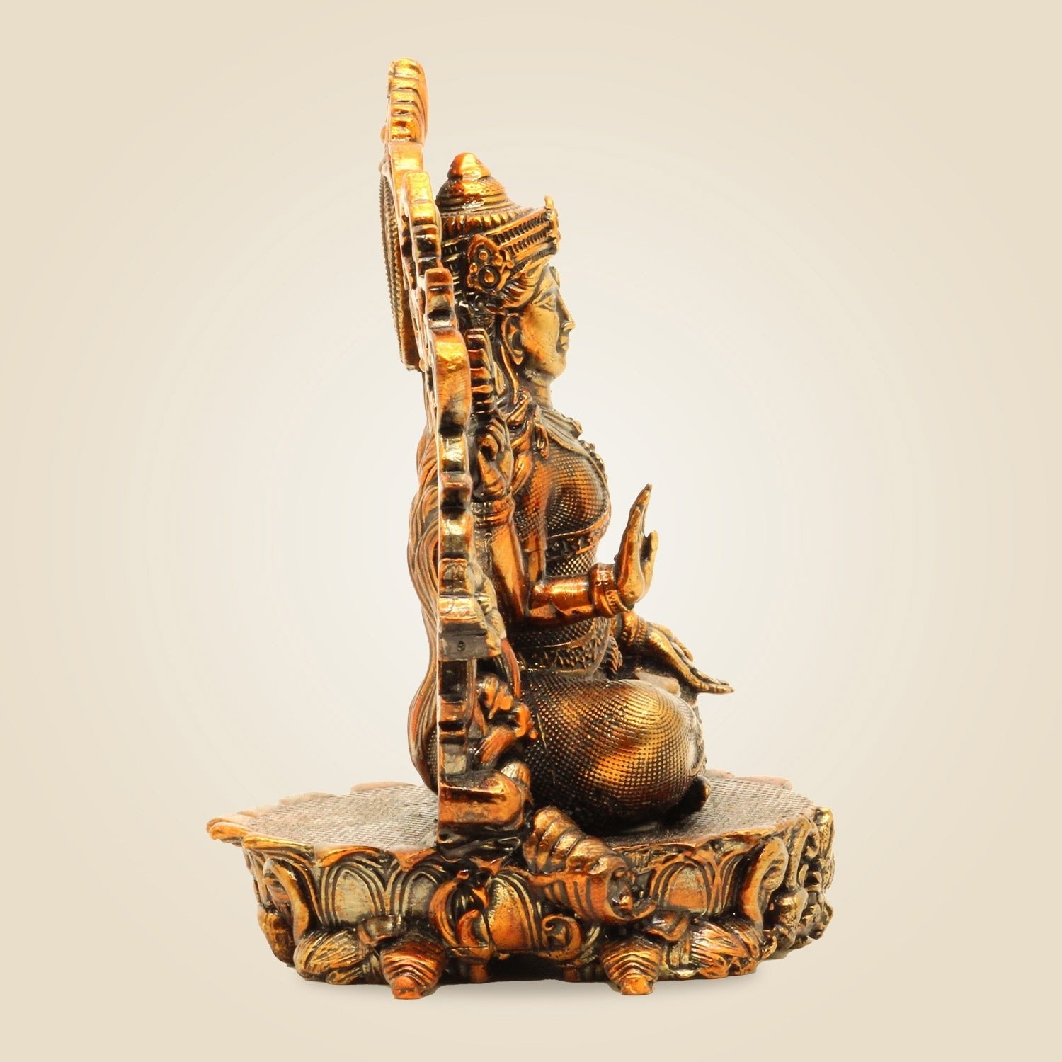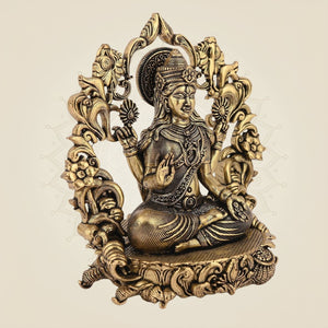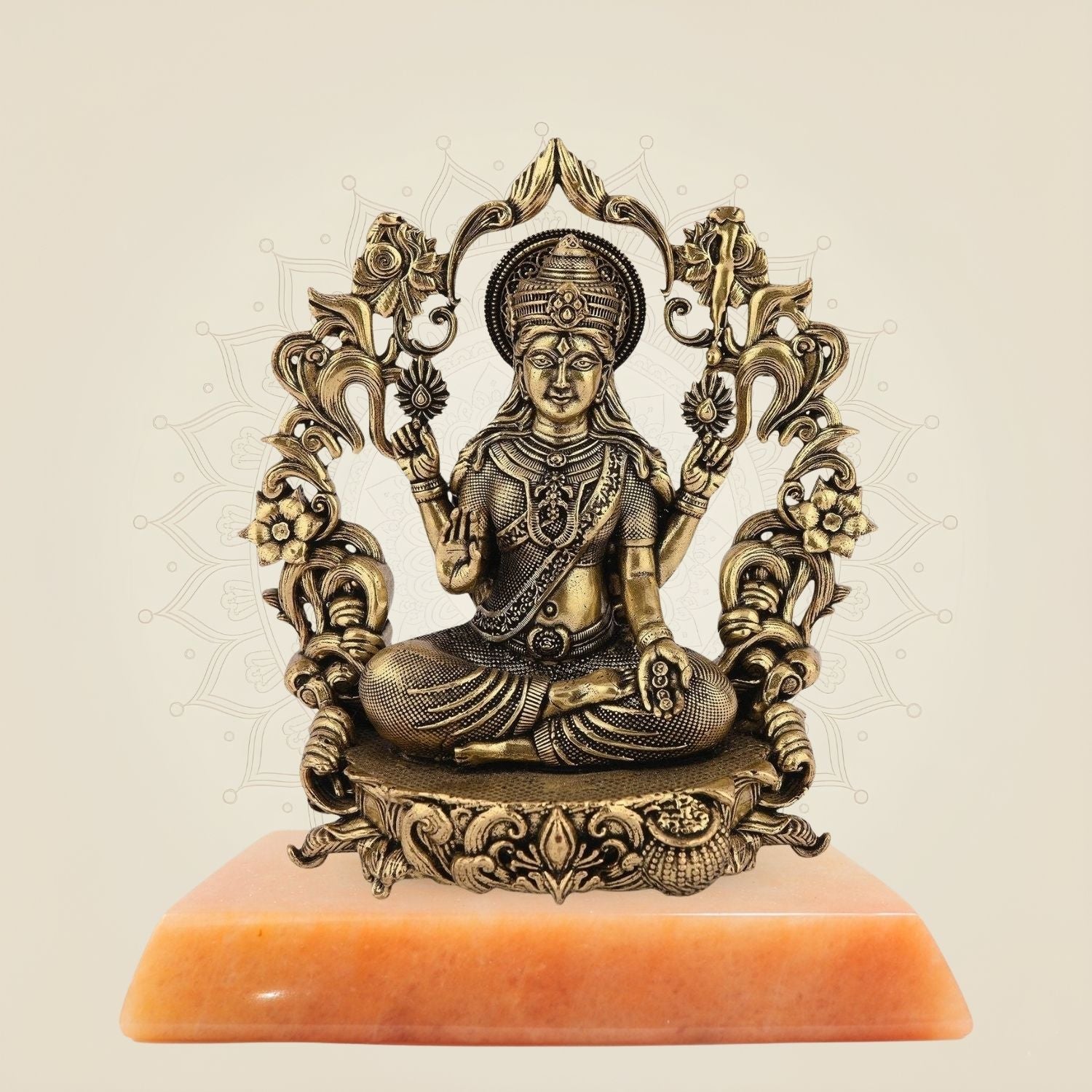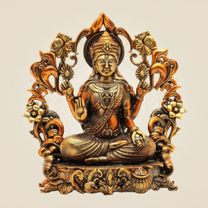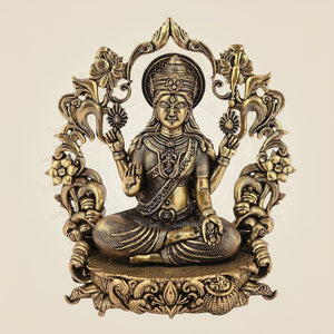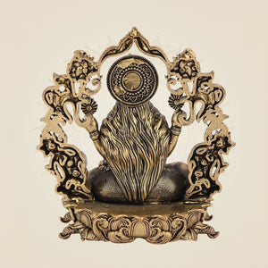 This finely crafted 3.75" brass statue of Goddess Laxmi with Darbaar captures the divine embodiment of wealth and prosperity. Expertly detailed, this superfine idol serves as an auspicious symbol for enhancing abundance in your home or workspace, blending traditional artistry with lasting durability. Ideal for dedicated worship or as a meaningful decorative piece, it invites positive energy and spiritual harmony.