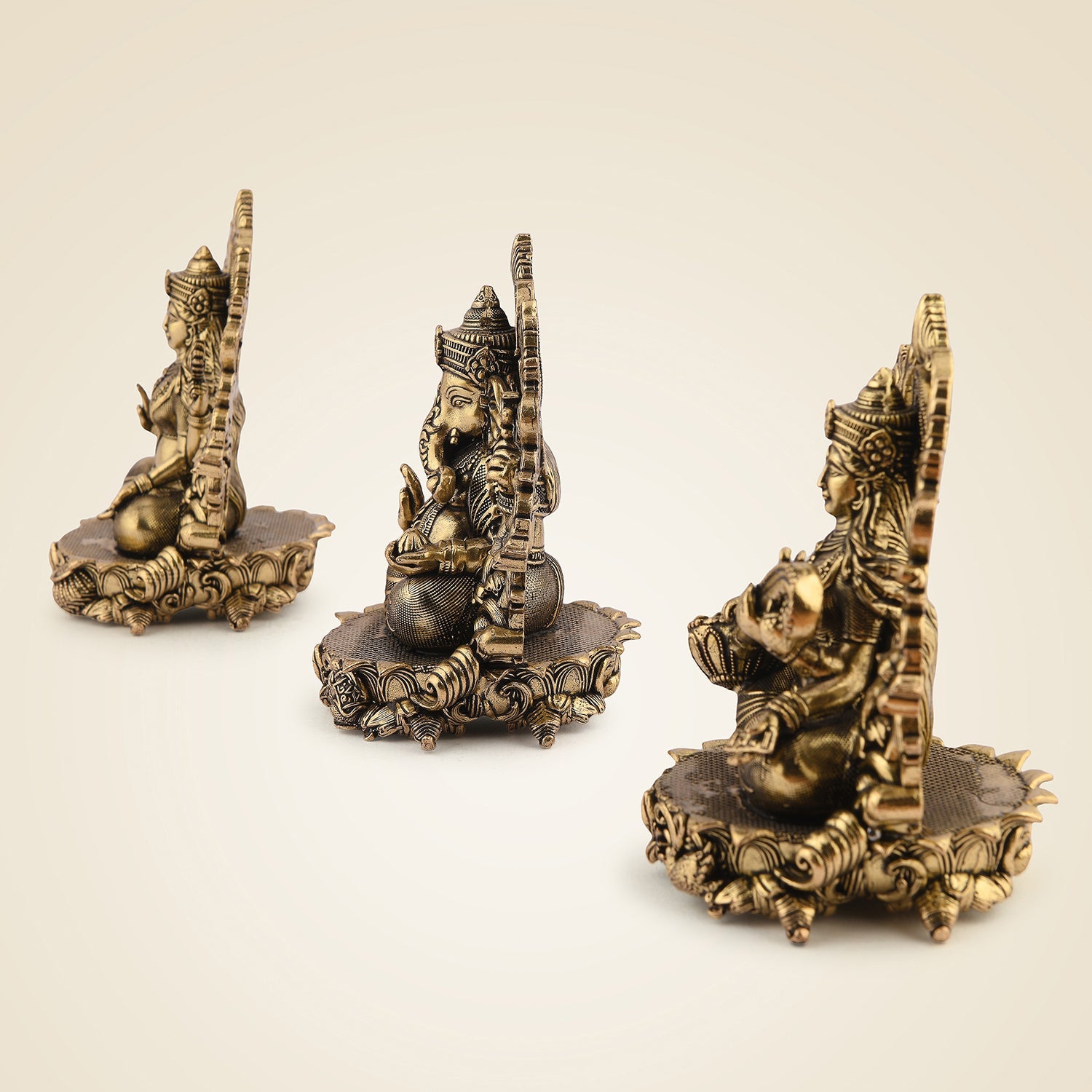 Laxmi Ganesh Saraswati Brass Idol – 3.75" Handcrafted Murti