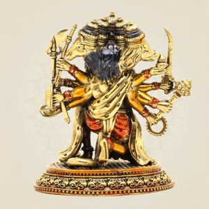 The Panchmukhi Hanuman Idol stands as a 6-inch brass masterpiece, meticulously handcrafted to embody strength and spiritual protection. Featuring Hanuman's five faces, this idol is revered for invoking positive energy and attracting wealth. Its durable brass composition ensures longevity, making it an ideal addition to your worship space or office. This idol not only serves as a symbol of devotion but also enhances the ambiance with divine energy, supporting mental clarity and prosperity in daily life.