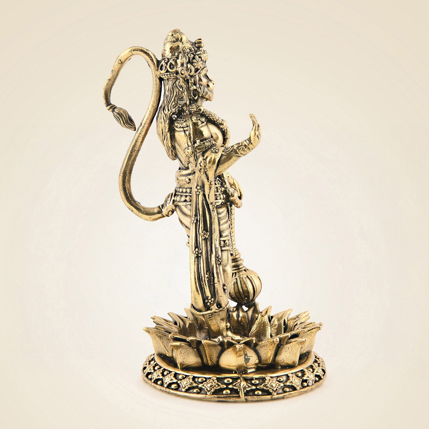Brass Hanuman Standing on Lotus 4″ – Superfine Carved Idol for Positivity