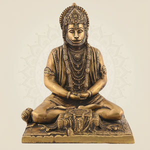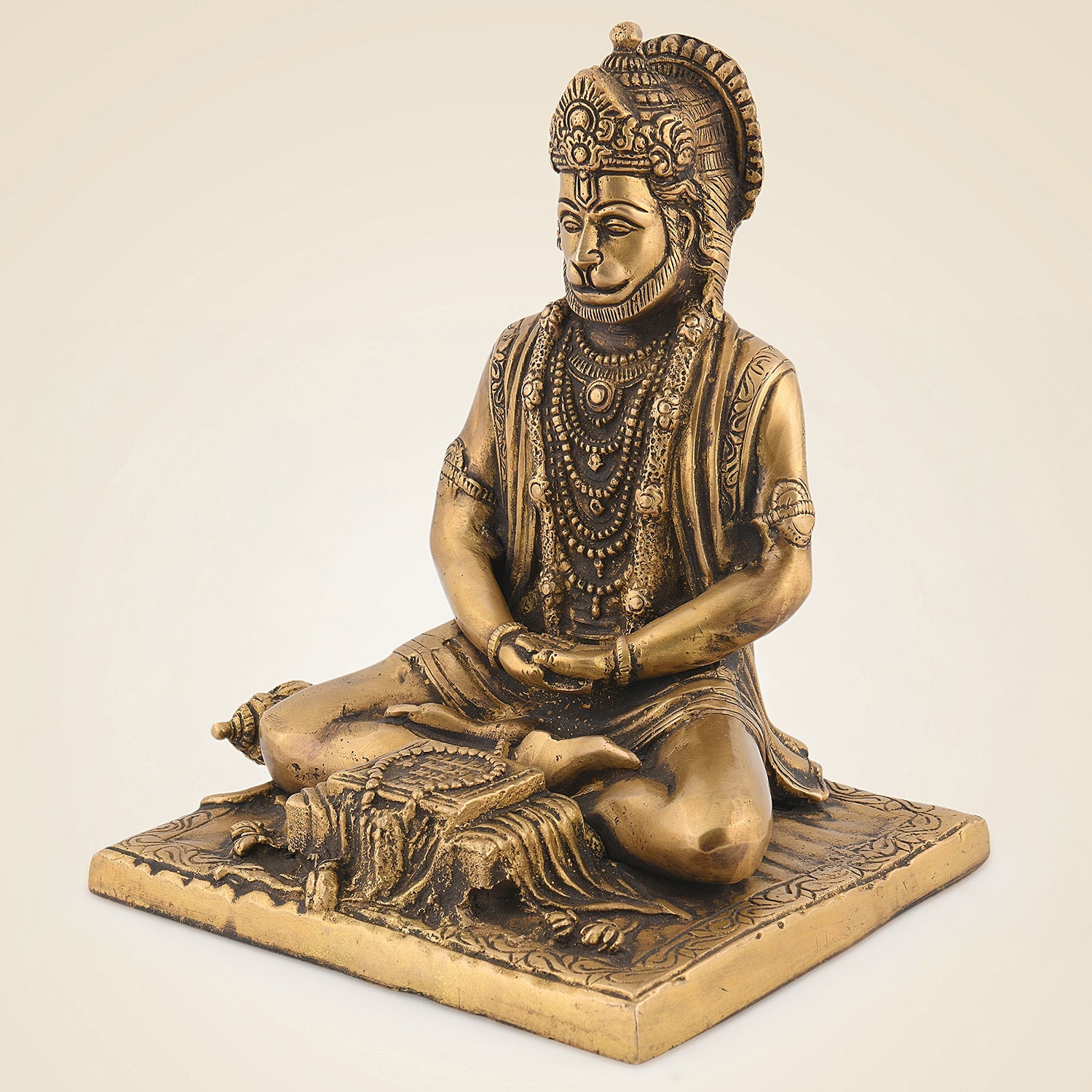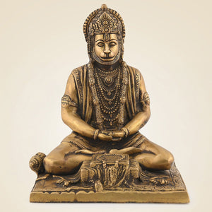 Meditating Hanuman Idol 7.5"– Pure Brass Handcrafted Murti for Home Decor & Protection