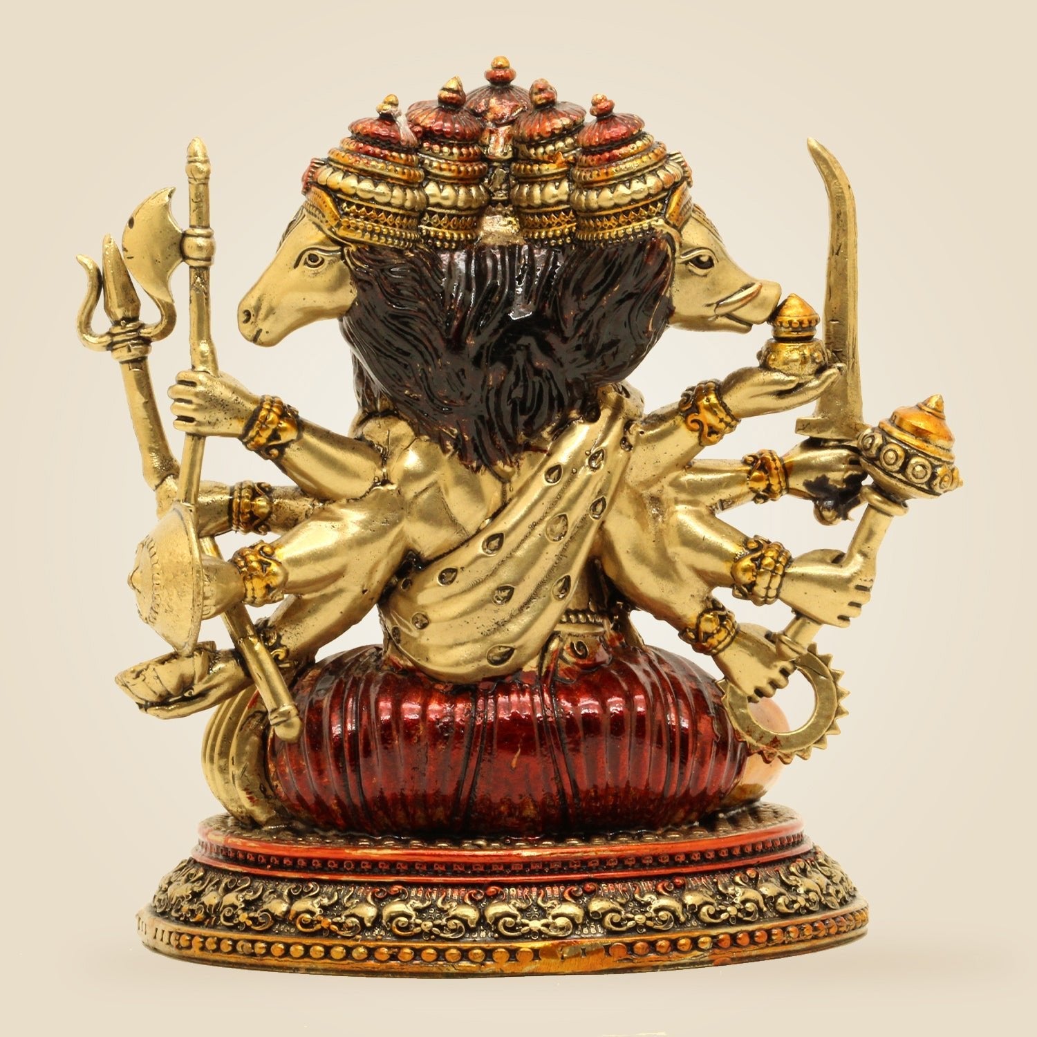 This finely handcrafted Panchmukhi Hanuman brass idol, measuring 3 inches, offers a perfect blend of traditional artistry and lightweight design. Expertly detailed, it captures the five-faced form of Hanuman, symbolizing strength and protection. Crafted from durable brass, this statue is ideal for home altars, offices, or as a thoughtful gift for devotees seeking spiritual inspiration and divine blessings.