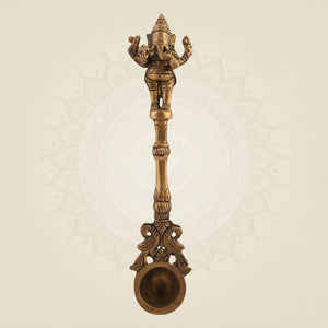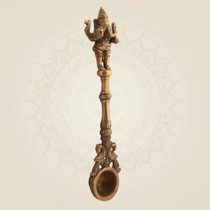 Pure Brass Ganesha Pooja Spoon β 9.5" Religious Accessory for Ritual Use