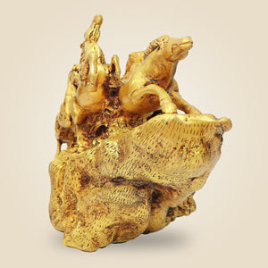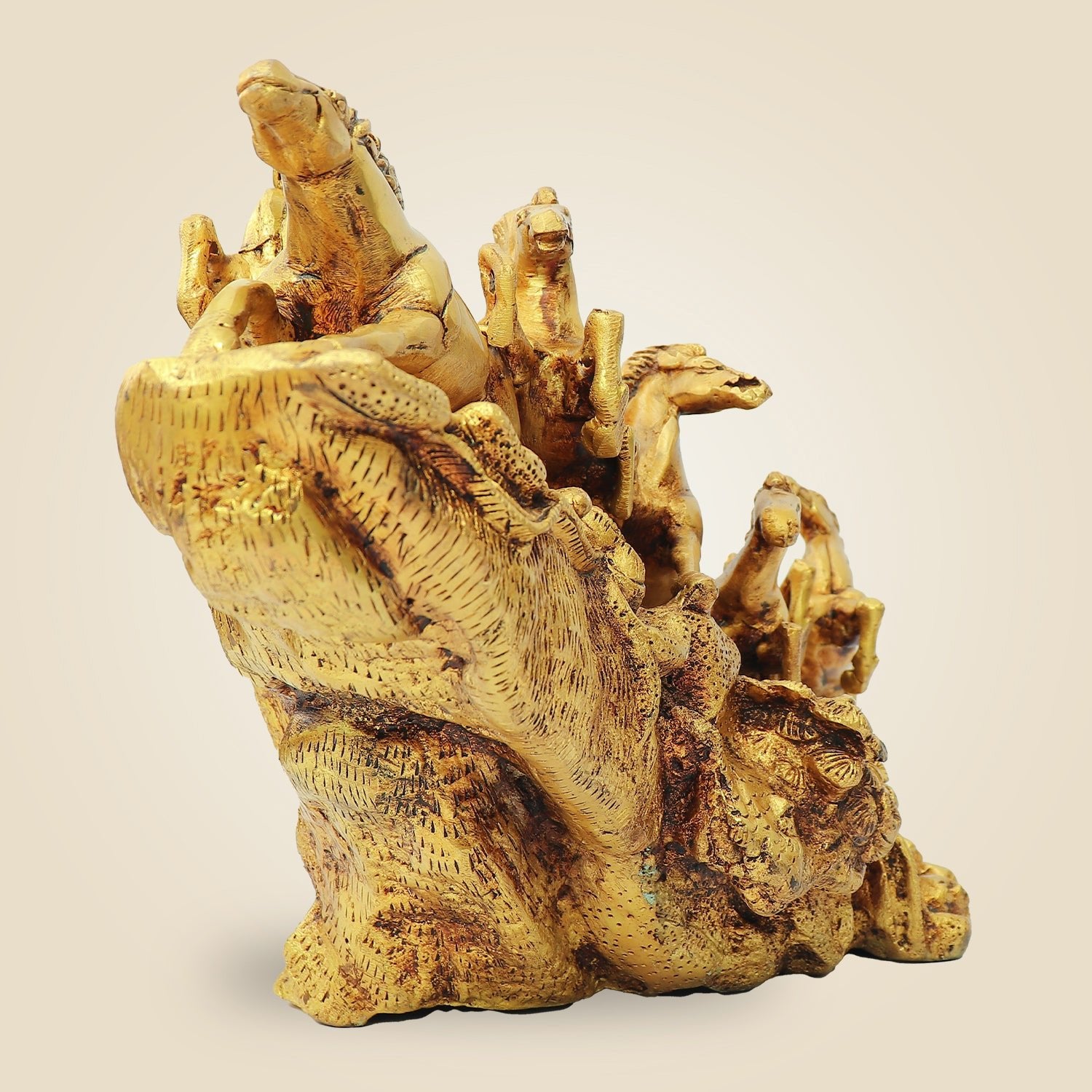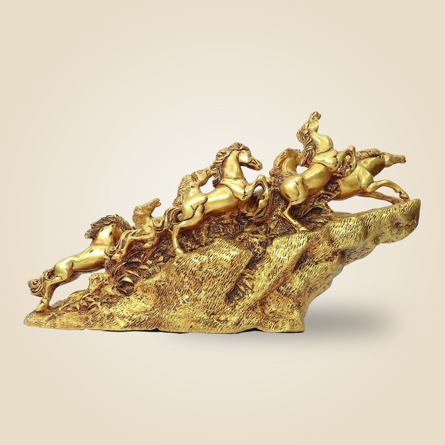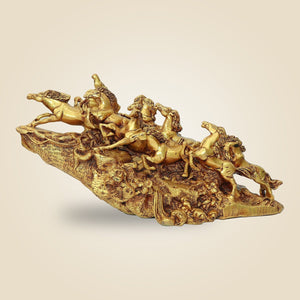 Elegant Vastu Horse Statue 10.5" – Handcrafted Golden Decor for Wealth & Success