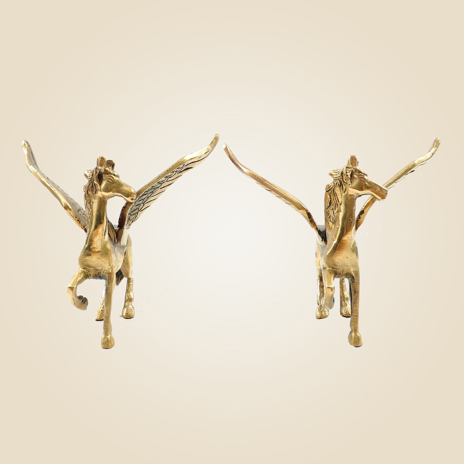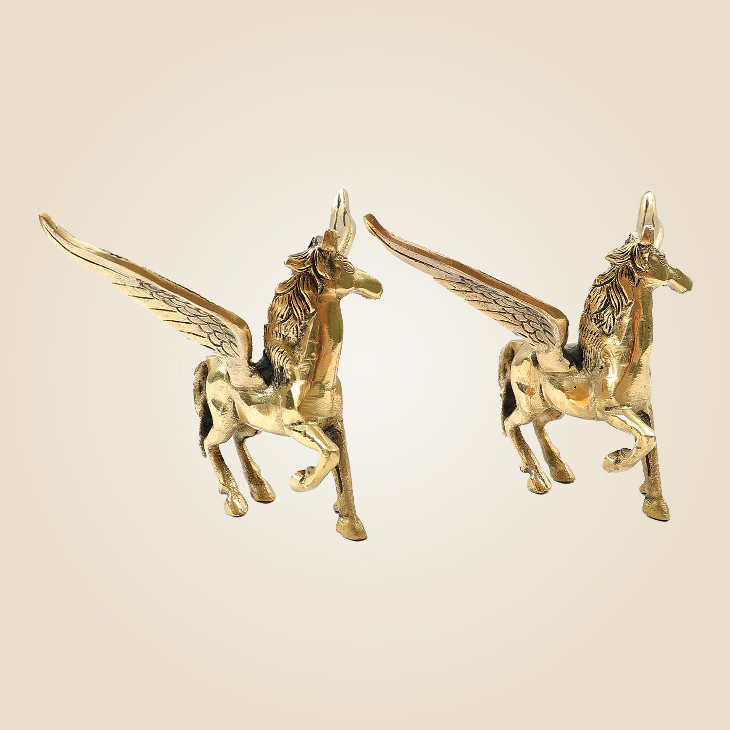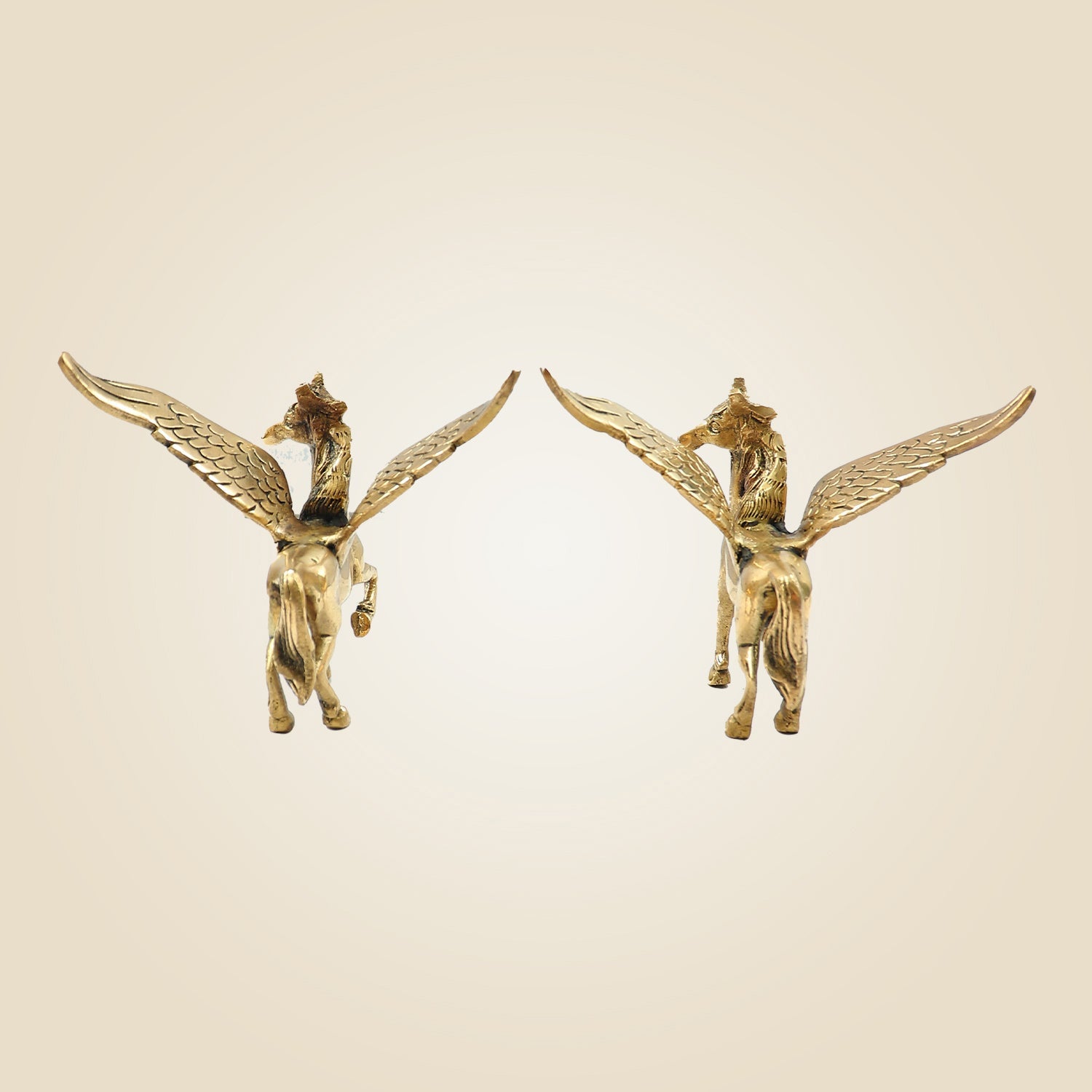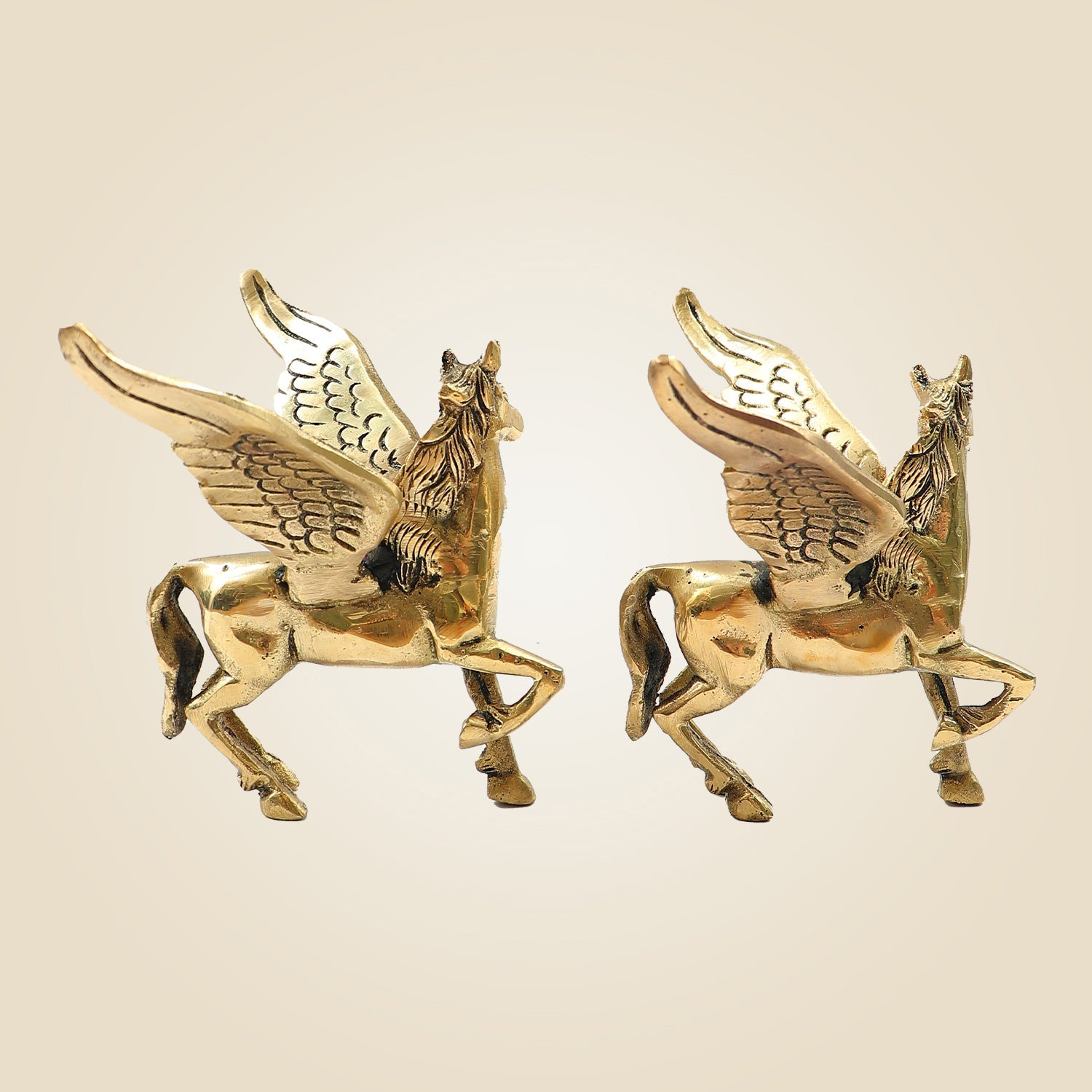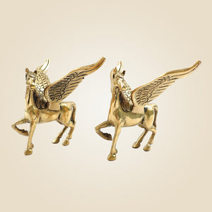 Pair of Brass Winged Horse Idols – Pegasus Style Handcrafted Showpiece - 4.5