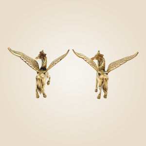 Elevate your décor with this exquisite pair of handcrafted brass winged horse idols in Pegasus style. Measuring 4.5 inches, each showpiece showcases fine artisanship with detailed wings and a polished finish, symbolizing grace and freedom. Perfect for collectors and connoisseurs, these statues add a timeless, elegant touch to any space, reflecting both artistic tradition and mythological inspiration.