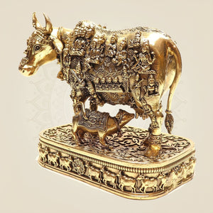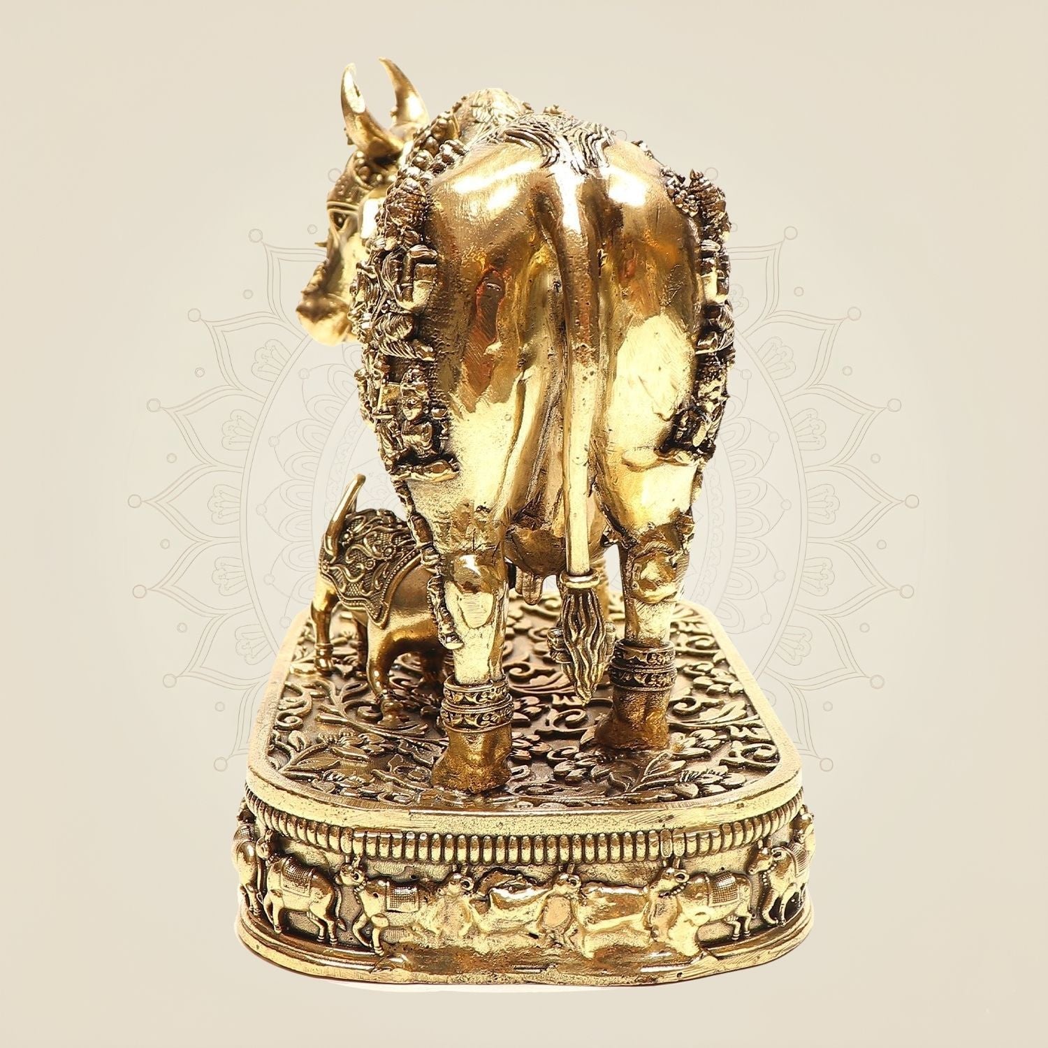 Divine Brass Kamdhenu Cow with Calf Statue 4" | Sacred Hindu Vedic Idol for Home & Temple
