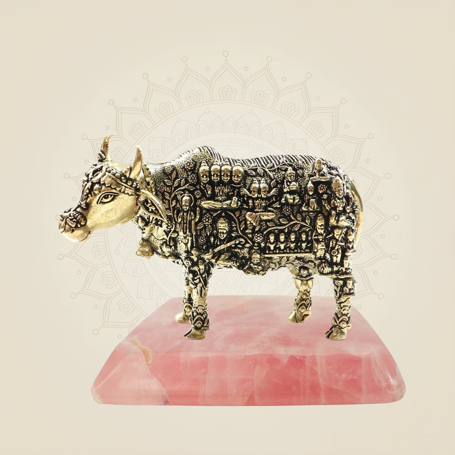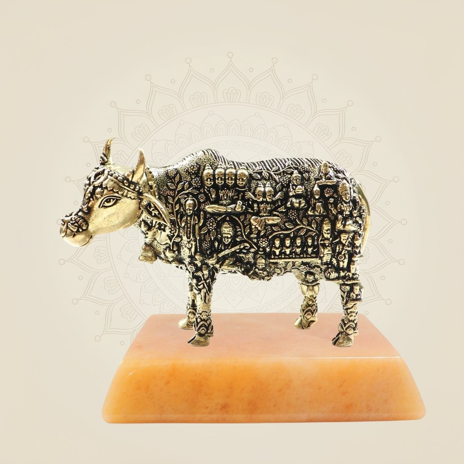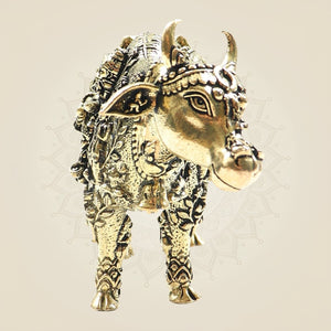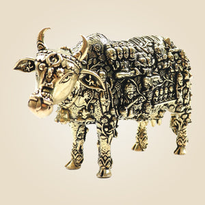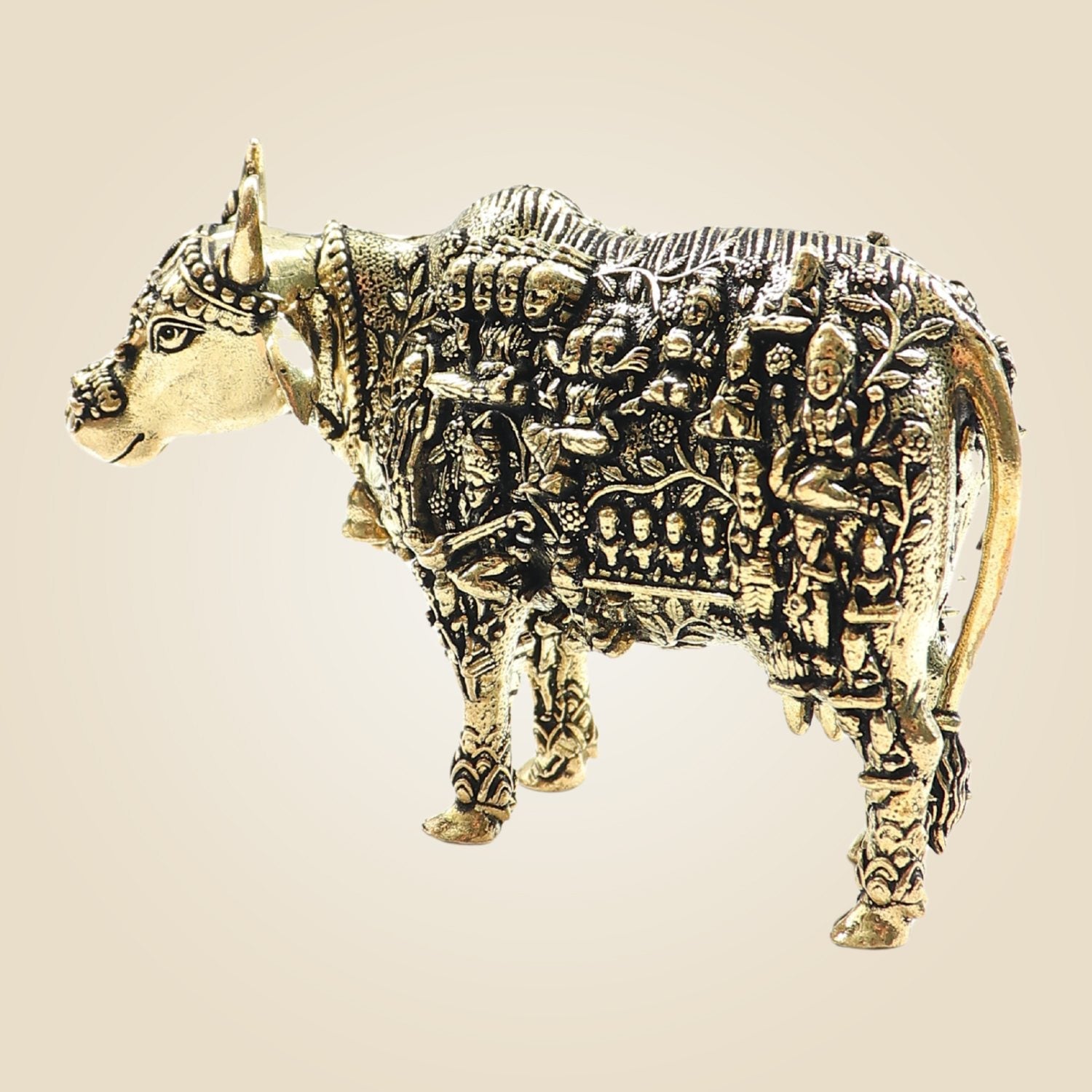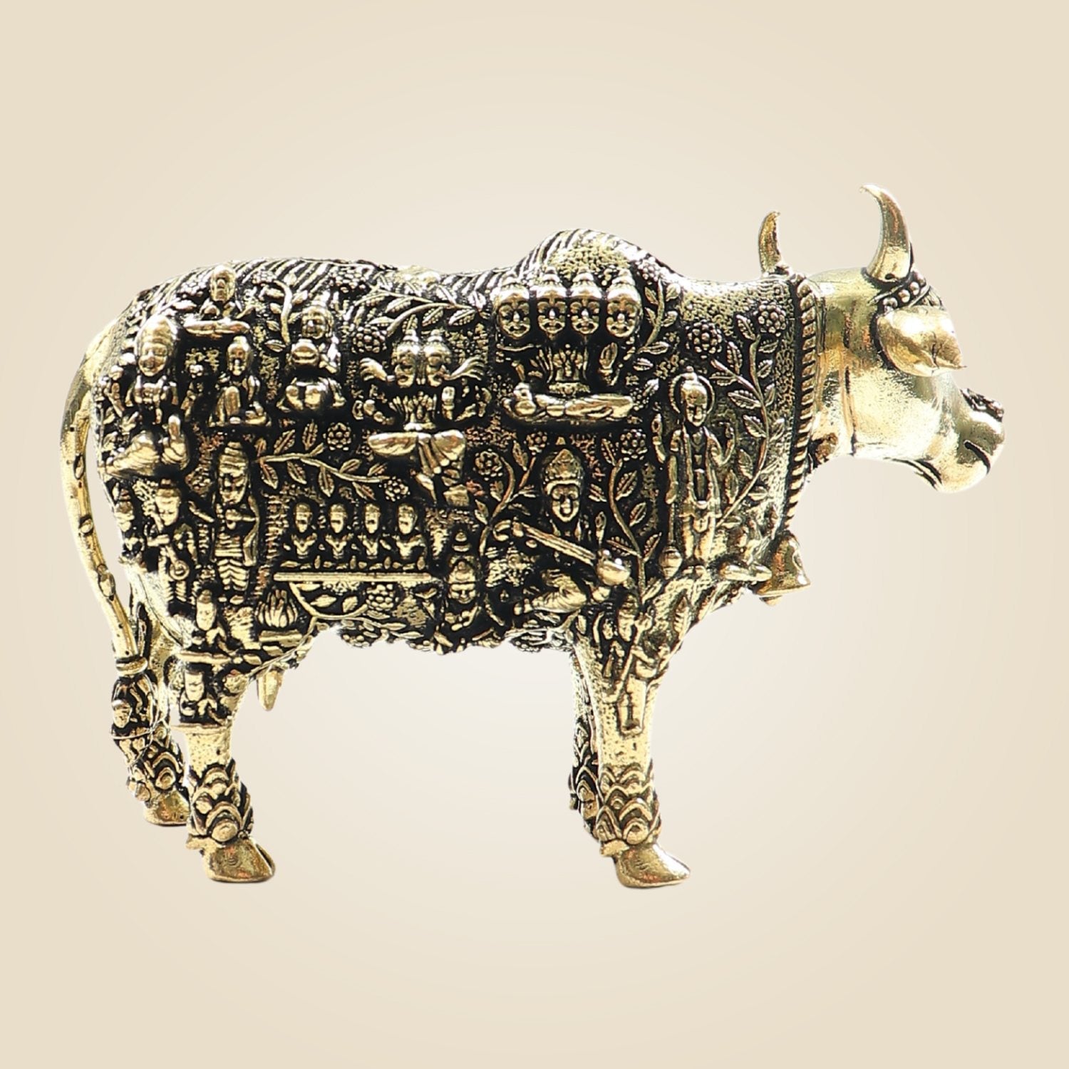 Exquisite Kamadhenu Cow Brass Statue 3"– Divine Artwork for Home