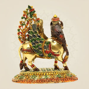 Celebrate tradition with the Kamdhenu Cow Base 4.75" idol, meticulously handcrafted from pure brass. This lightweight, durable piece combines exquisite artistry with cultural significance, making it ideal for spiritual altars or as a meaningful decor accent. Its compact size ensures...