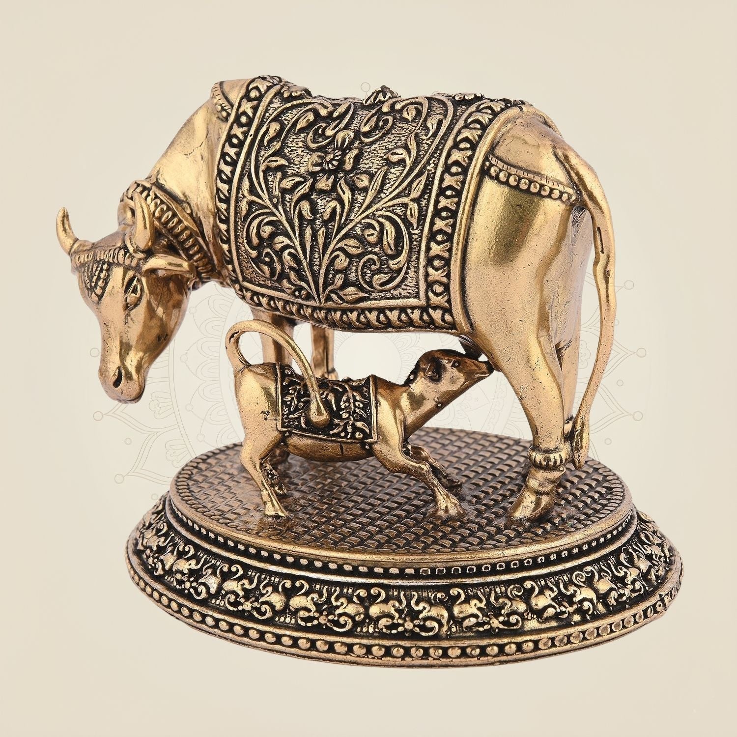 Kamdhenu Cow Idol 4" β Lightweight Brass Murti for Peace, Prosperity & Decor
