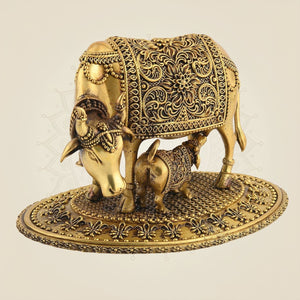 Kamdhenu Cow with Calf Brass Idol 3.5" β Handcrafted Vastu Decor for Home