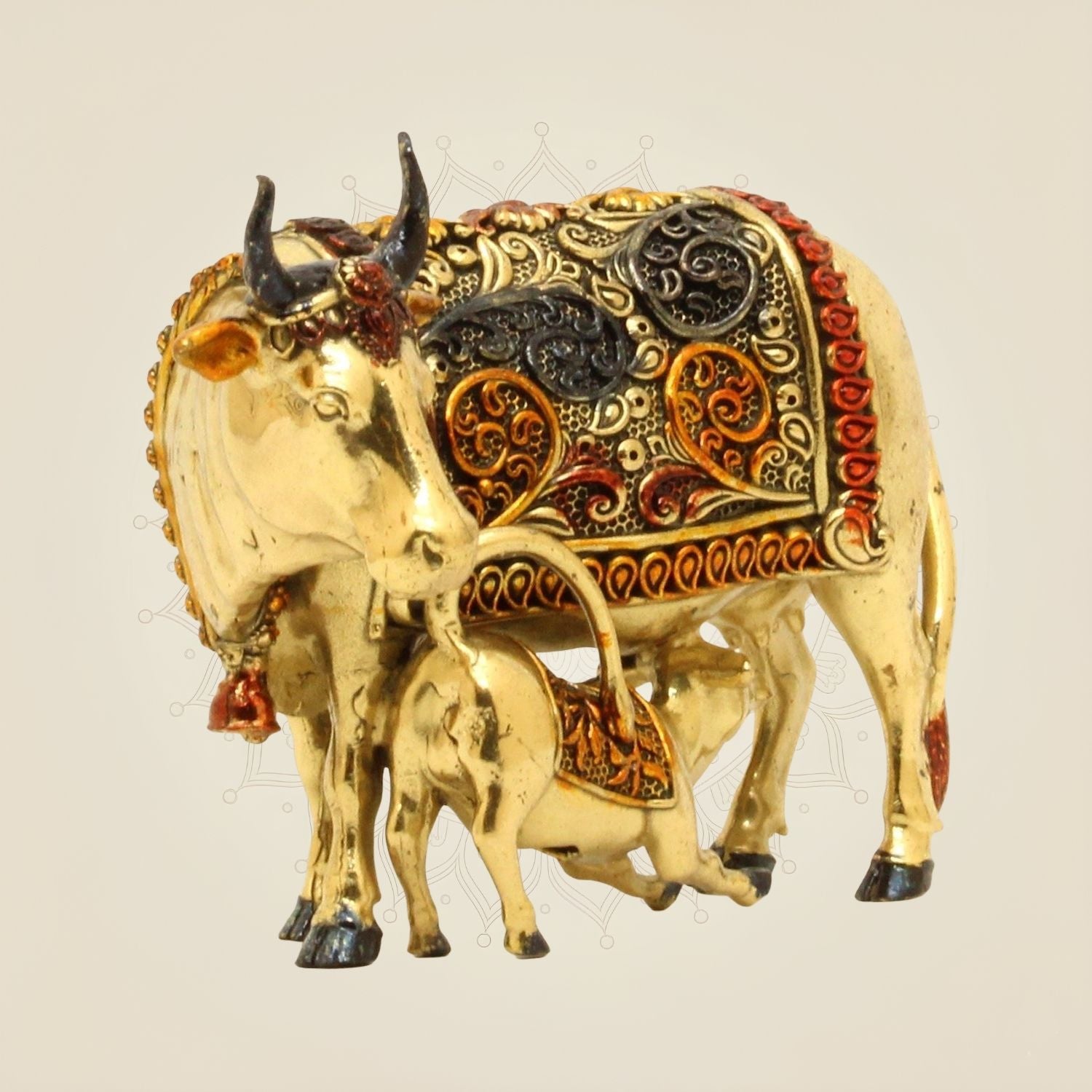 Pure Brass Kamdhenu Cow Idol & Calf 3.25" – Lightweight, Handcrafted Artisan