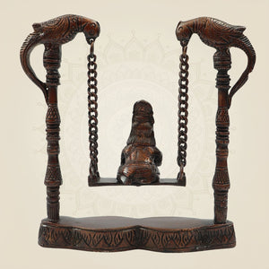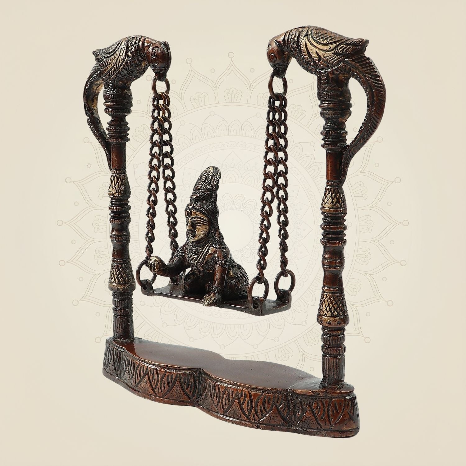 8" Brass Laddu Gopal on Jhula – Charming Bal Hand Painted Krishna Idol for Janmashtami, Puja & Home Décor