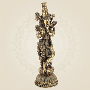 This 8.75-inch Brass Krishna Idol is a finely handcrafted statue that brings a sacred presence to your home temple. Meticulously detailed, it captures the divine grace of Lord Krishna, making it an ideal piece for spiritual decor and worship. Its durable brass material ensures longevity, while the artisanal craftsmanship adds a unique, timeless aesthetic to your devotional space. Perfect for those seeking an authentic representation of Krishnaβs charm and serenity in their daily rituals.