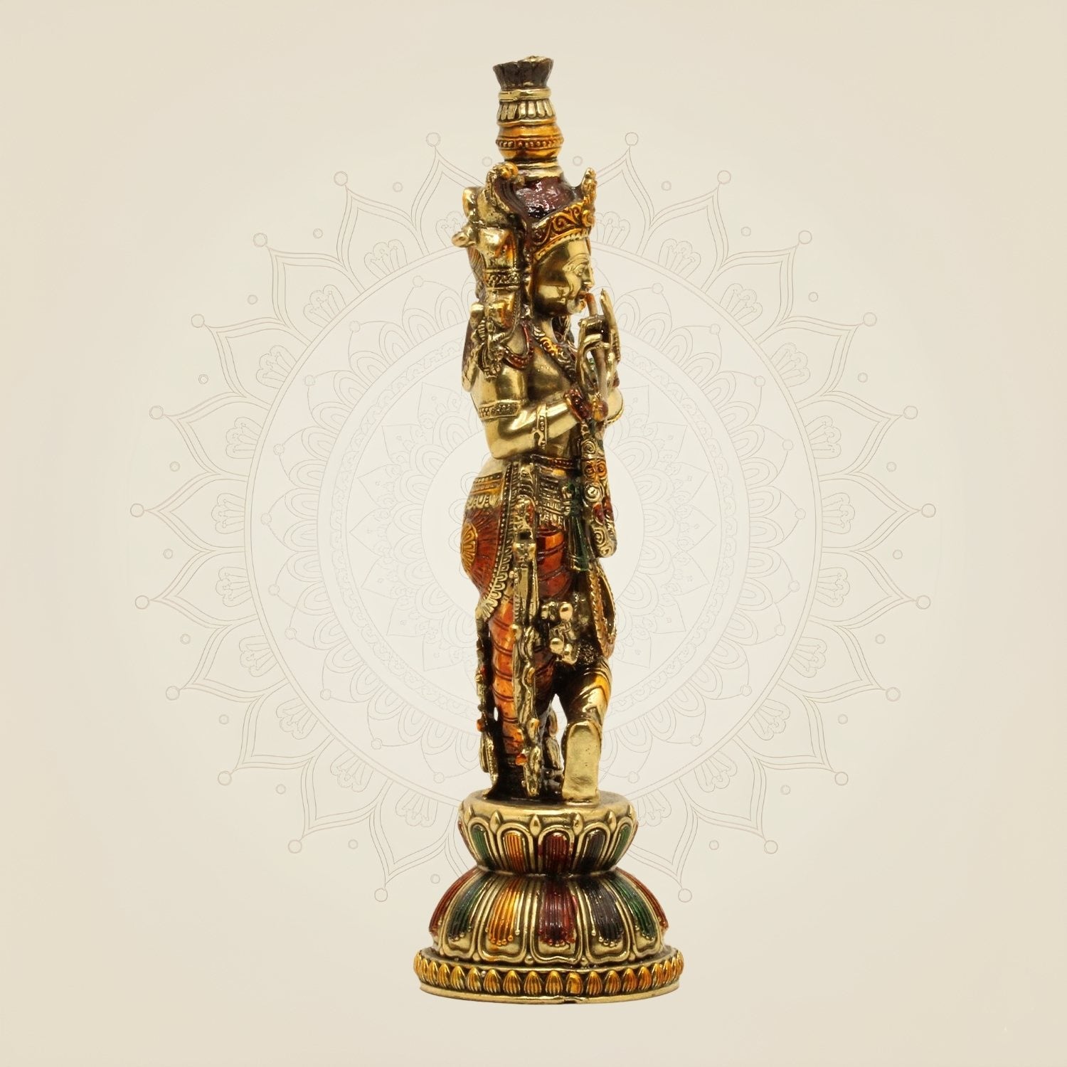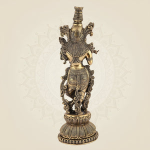 Brass Krishna Idol 8.75" β Handcrafted God Statue for Home Temple Decor