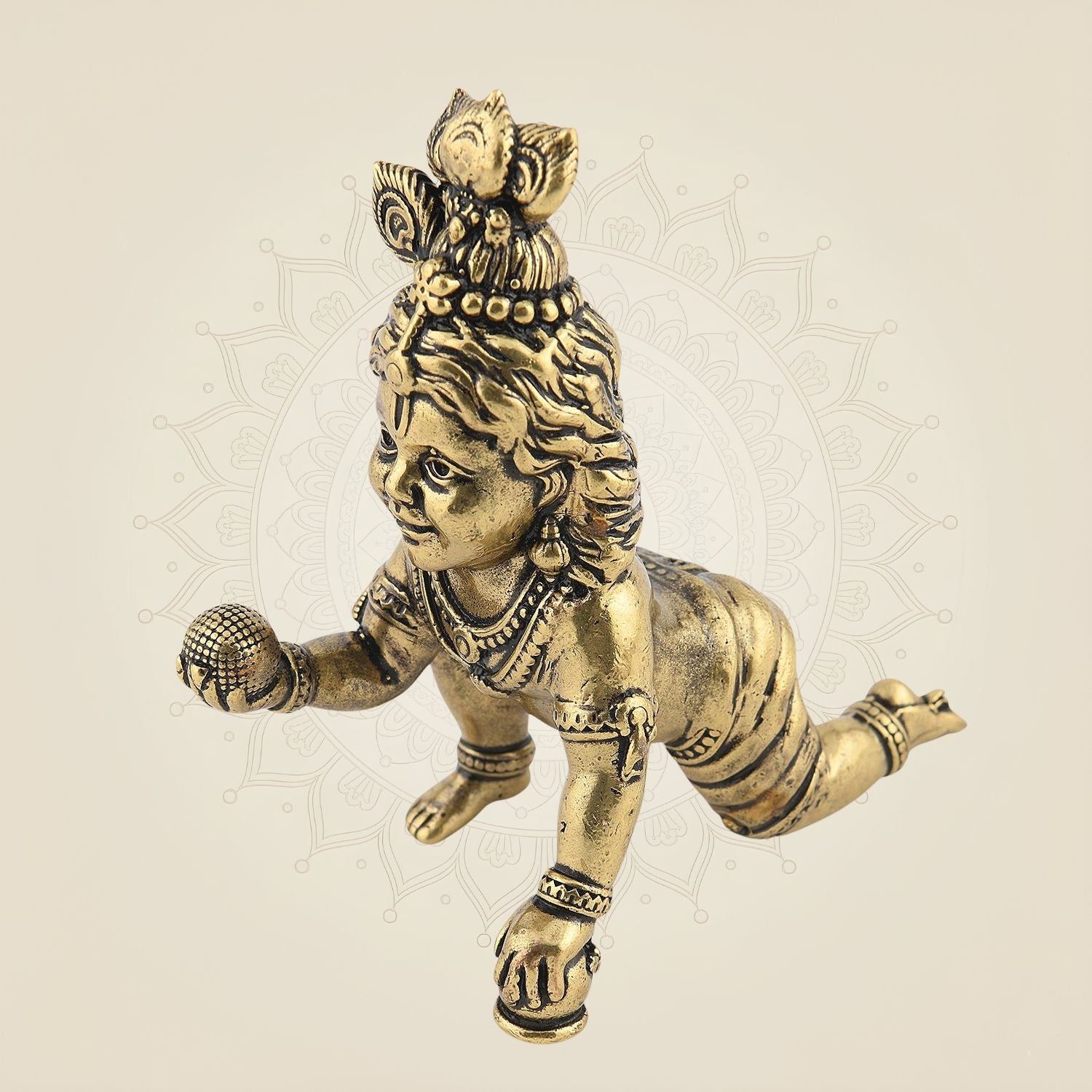 Brass Laddu Gopal 2"- Small Kanha Ji Idol for Home & Gift Use
